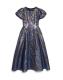 The curtain rises on the Matinee Jacquard Midi Dress, a metallic floral masterpiece with puffed sleeves and a gathered silhouette. A dress that belongs in a dream sequence.