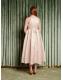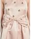 Duchess satin forms the foundation of this luminous midi, shimmering like a dream sequence brought to life. Gem embellishments and a fixed bow at the waist add a touch of enchantment, fully lined for comfort as you move through your own illusion.
