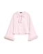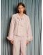 The Wonder Stripe Blouse whispers of whimsical sophistication. Tulle ruffles and gem buttons catch the light like passing reflections. Tie it up, and let the story begin by pairing with the Wonder Stripe Trousers.