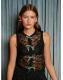 A vision from the golden age of cinema, the Eclipse Lace Bow Top captures twilight glamour in motion. Sequins glint beneath hand beaded bows, evoking the allure of grand illusions and silver screen dreams. Complete the story with the Eclipse Lace Midi Skirt.