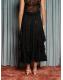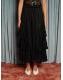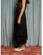 The Eclipse Lace Midi Skirt conjures a dream of sequins and lace - each tiered ruffle catching the light like a scene from a grand illusion. Movement becomes magic, where grace and drama entwine. Complete the vision with the Eclipse Lace Bow Top.