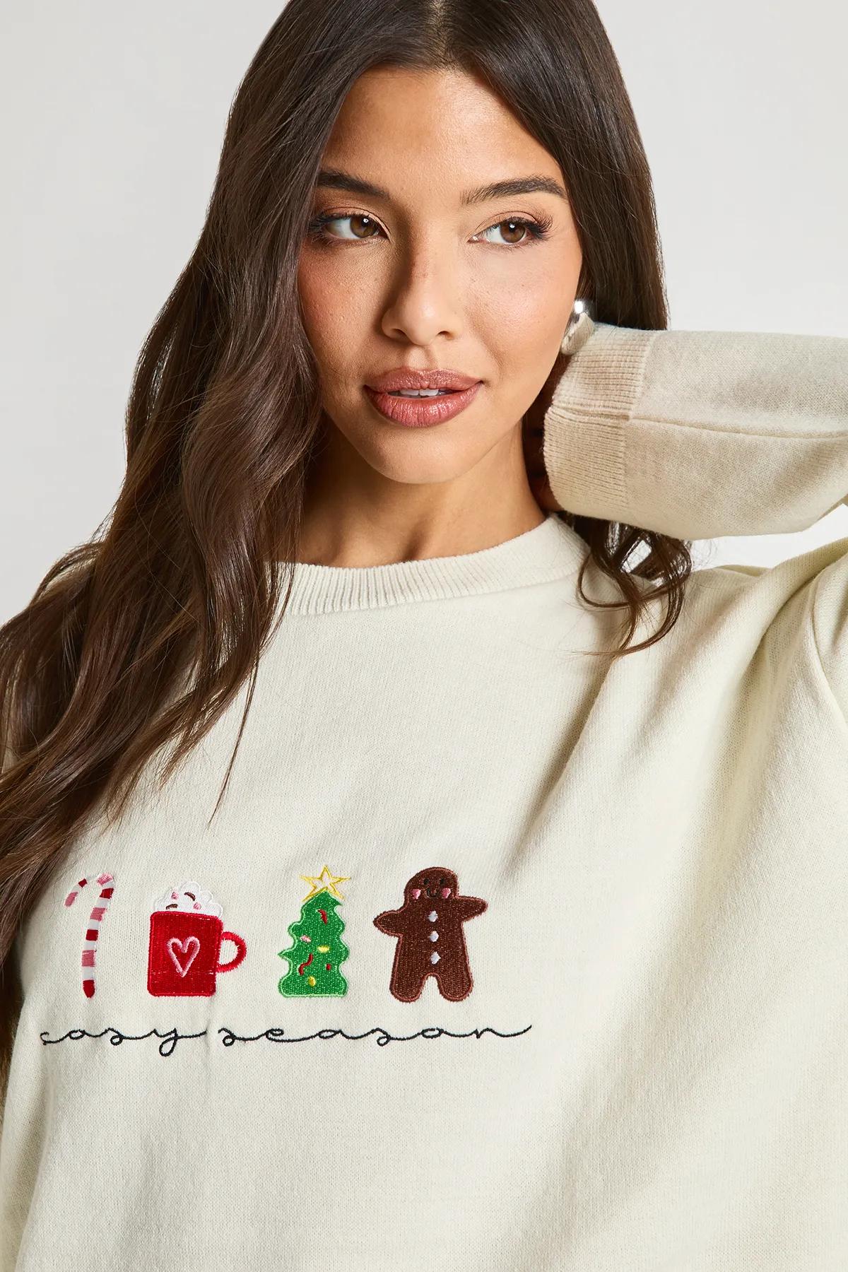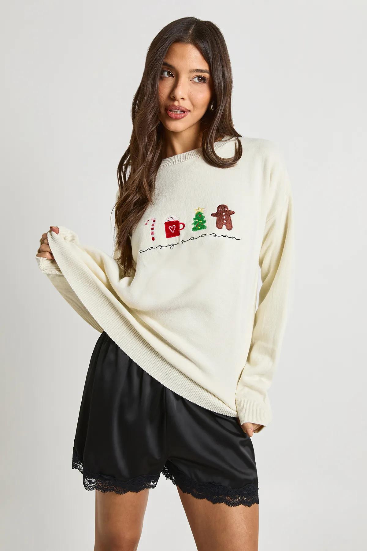 Jumpers & Cardigans | Cosy Season Embroidered Christmas Jumper | boohoo