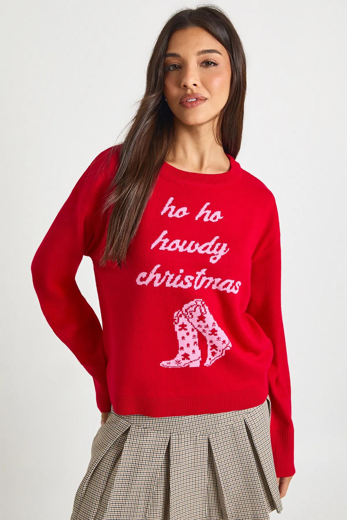 Jumpers & Cardigans | Ho Ho Howdy Christmas Jumper | boohoo