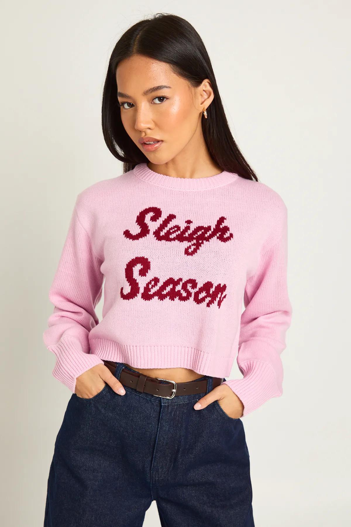 Jumpers & Cardigans | Petite Sleigh Season Cropped Christmas Jumper | boohoo