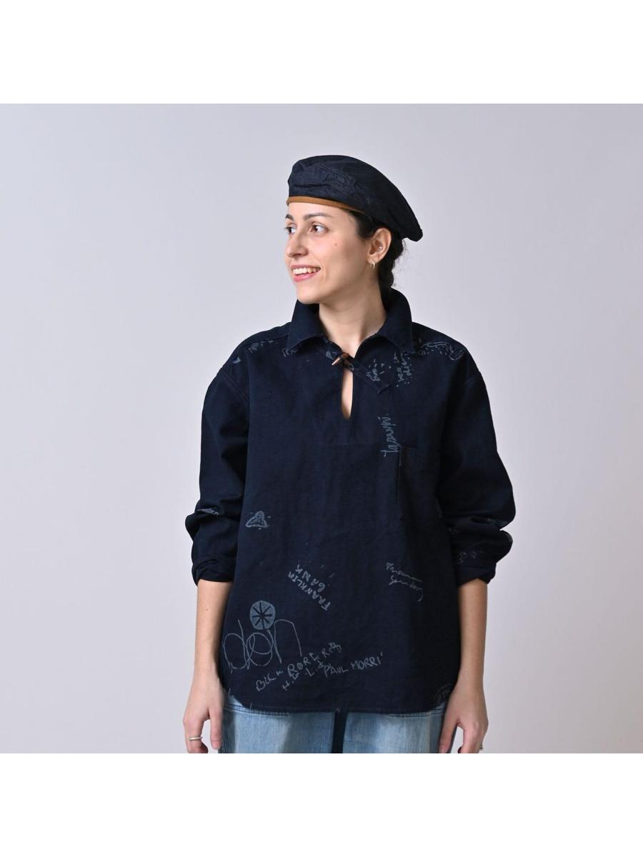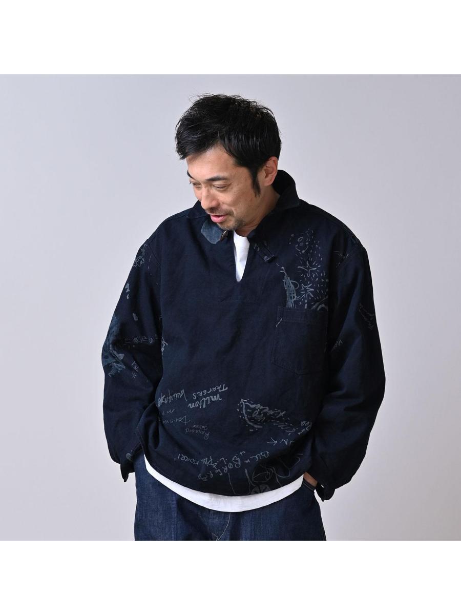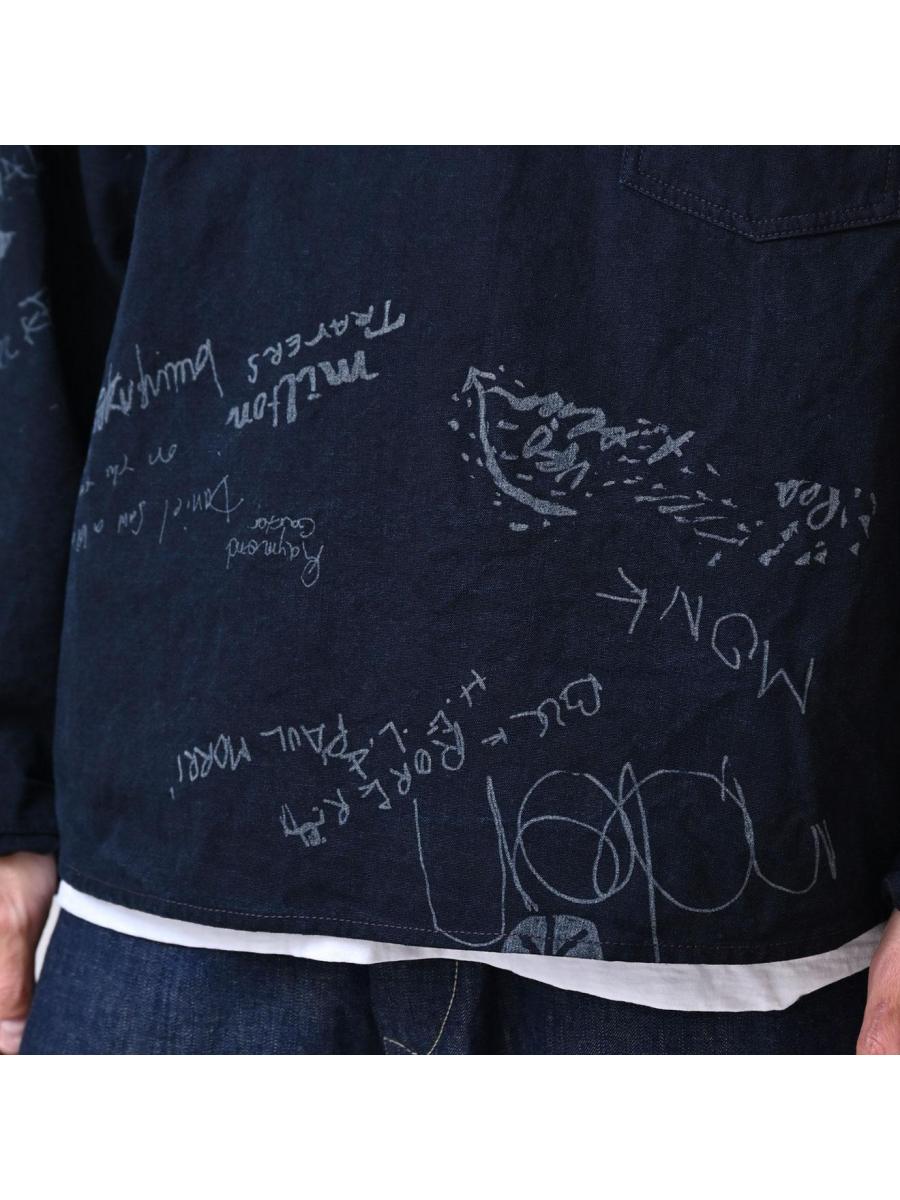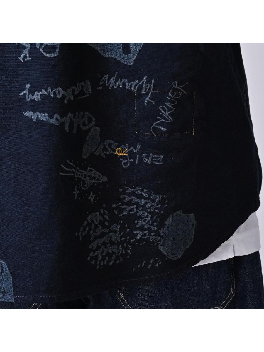 ダック落書きプリントの908ダッファーシャツ(インディゴ)