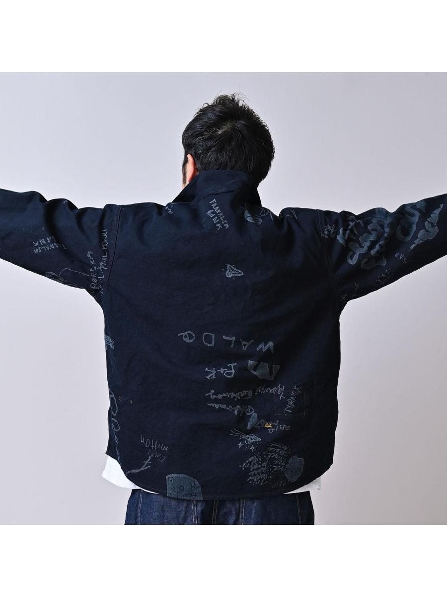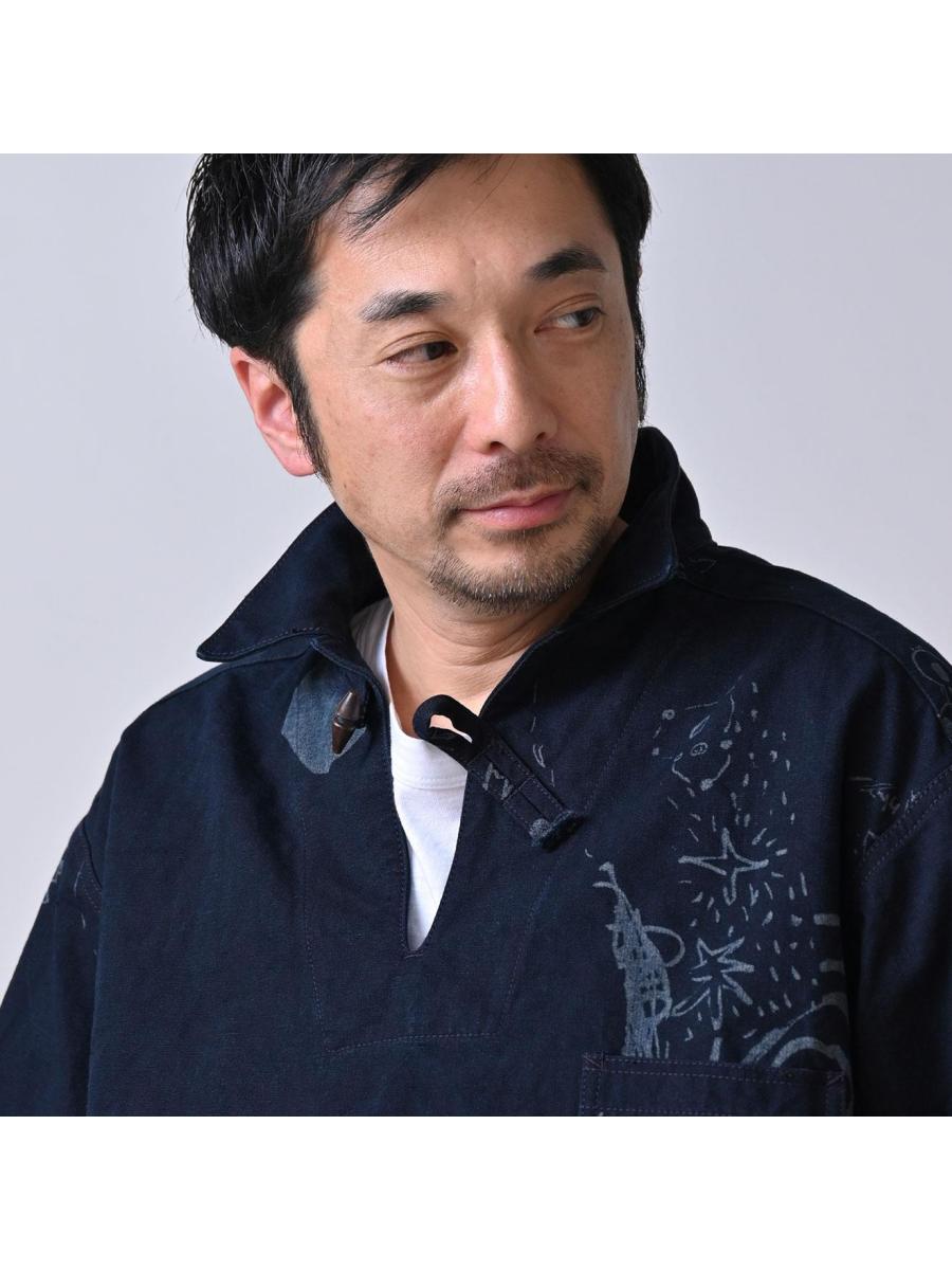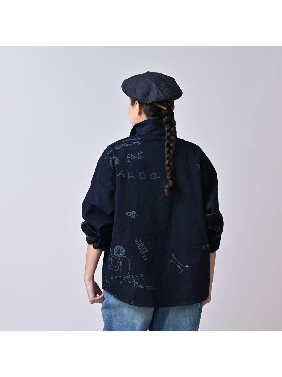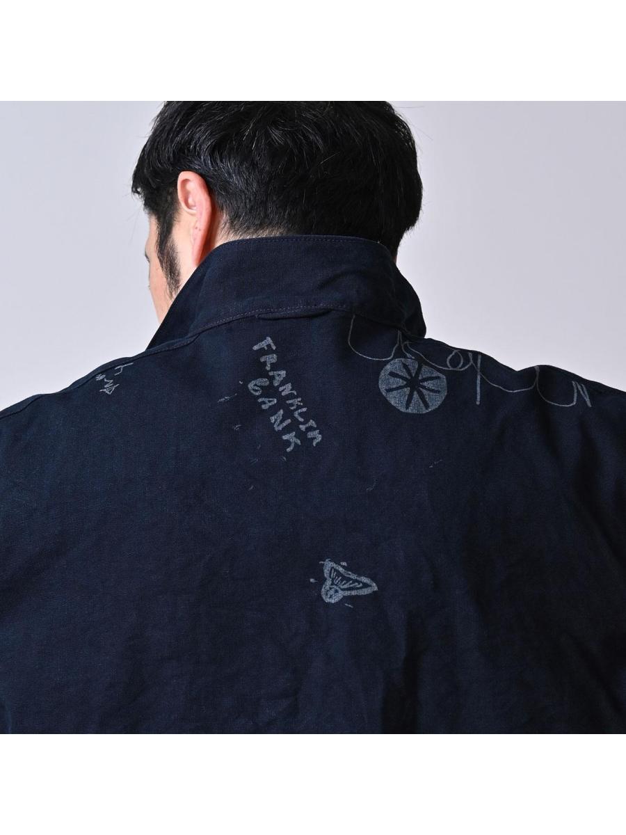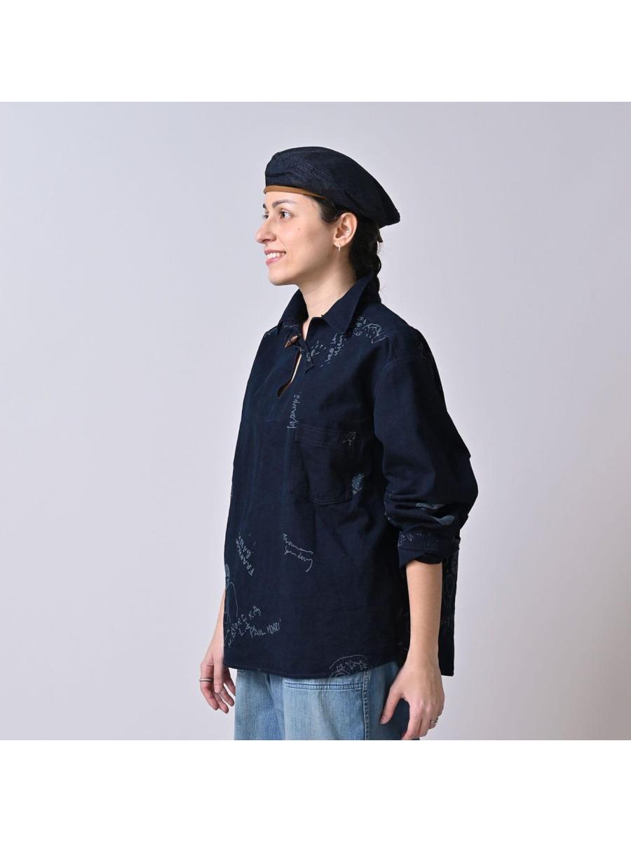 ダック落書きプリントの908ダッファーシャツ(インディゴ)