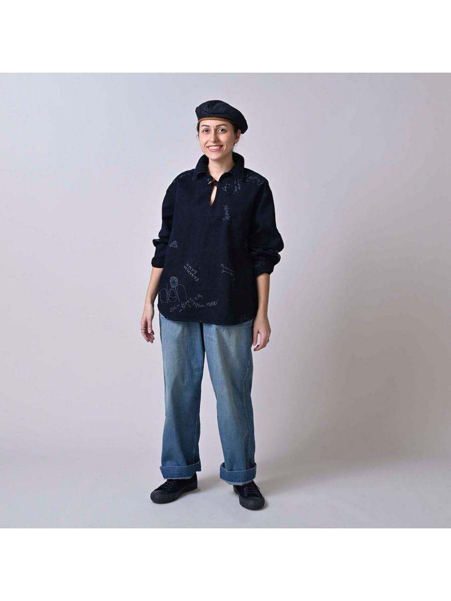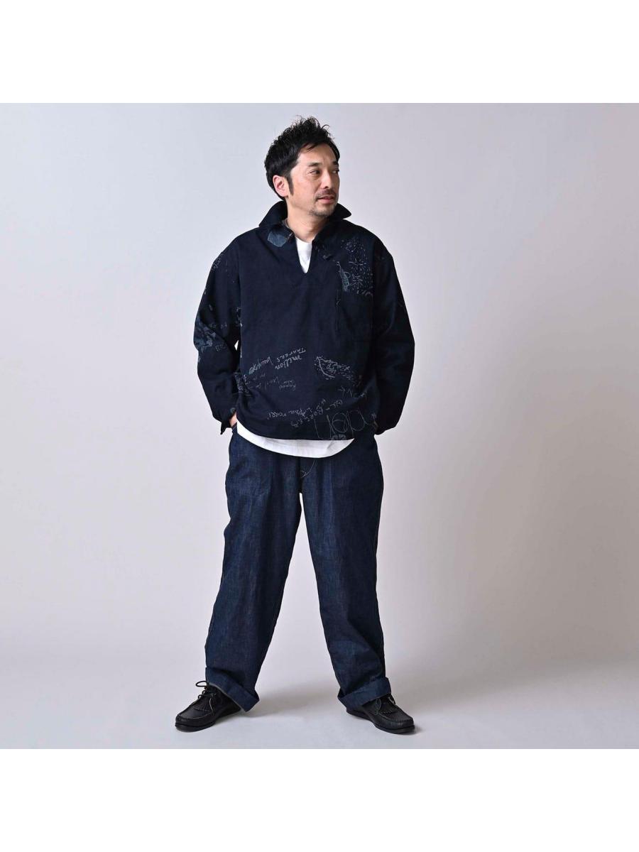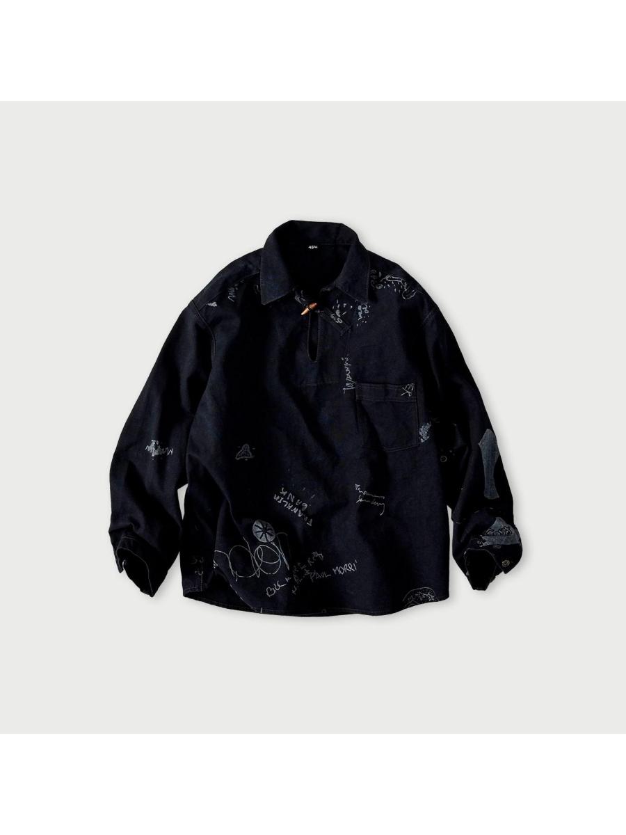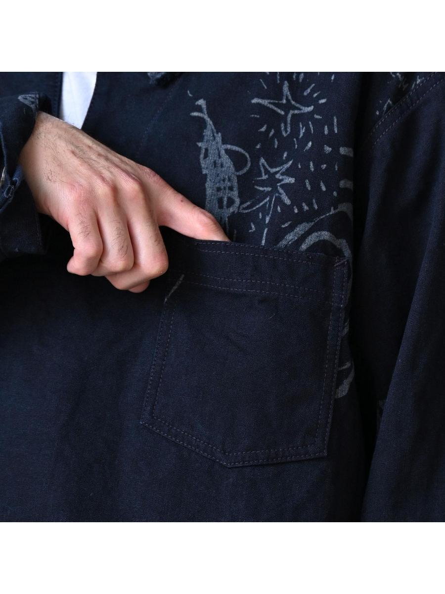 ダック落書きプリントの908ダッファーシャツ(インディゴ)