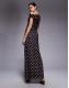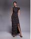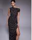 TFNC slinky asymmetric shoulder thigh split maxi dress in chocolate polka dot