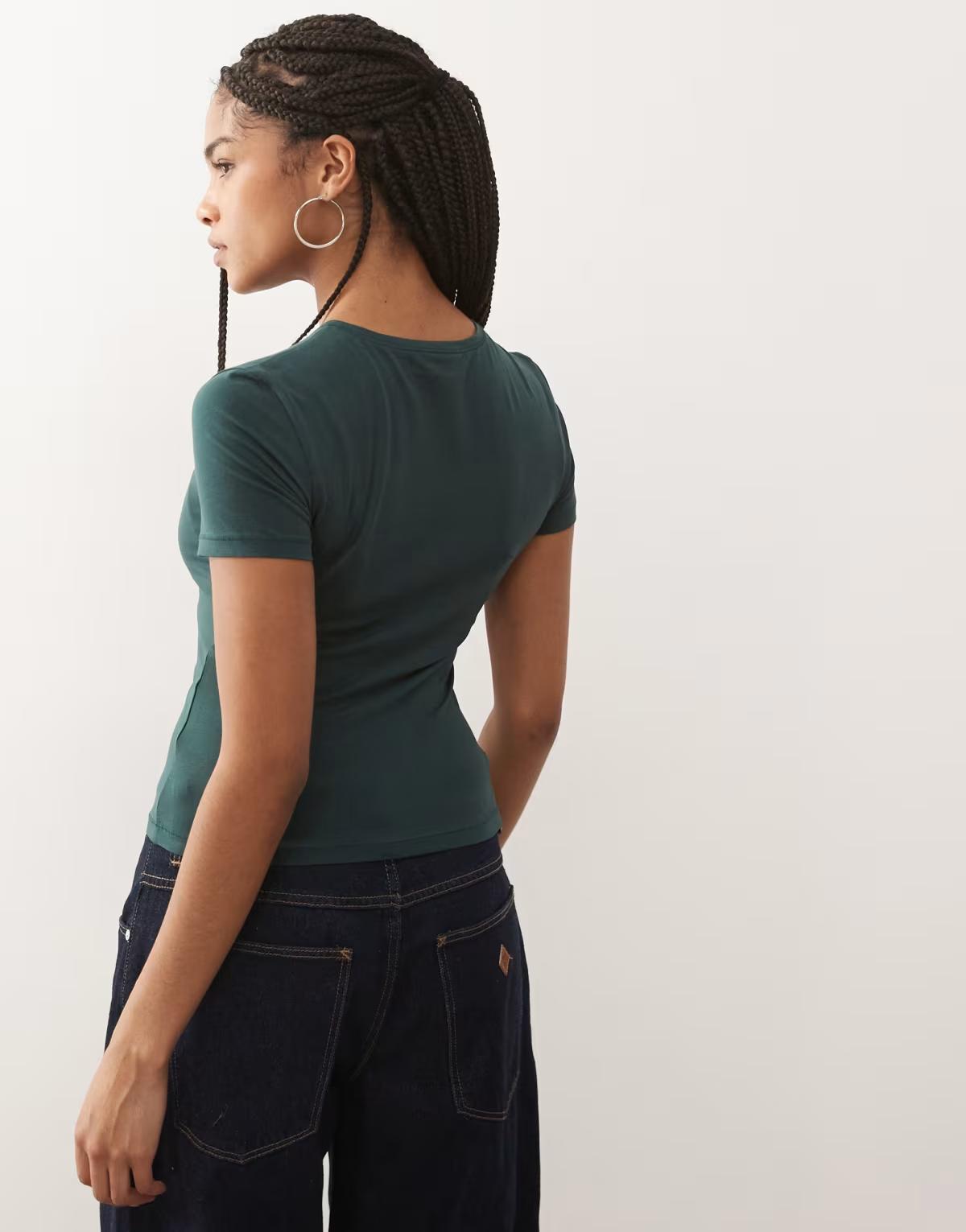 Machine wash according to instructions on care labelMain: 91% Cotton, 9% Elastane.With Scandi roots and a street-style vibe, Weekday offers up that coveted laid-back, minimal look. Founded in 2002, the Swedish brand draws inspiration from art, pop and youth culture to create its super-fresh collections. Scroll our Weekday at ASOS edit for relaxed basics, including T-shirts, dresses, jackets and staple denim pieces, or filter by swimwear, lingerie and accessories to discover everything from bikini separates and soft-cup bras to pared-back-but-playful jewellery and sunglasses.