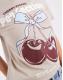 Cherry-inspired graphic and text print on front