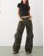 Lioness Sweetness low rise pocket detail oversized cargo jean in khaki camo