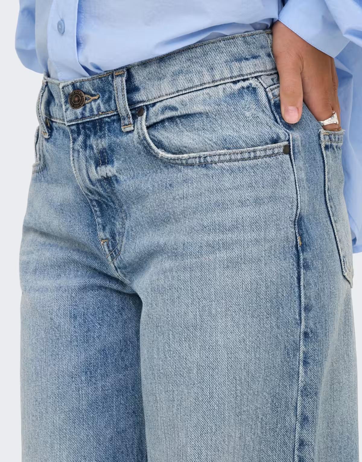 Machine wash according to instructions on care labelNon-stretch denim: mid-blue wash