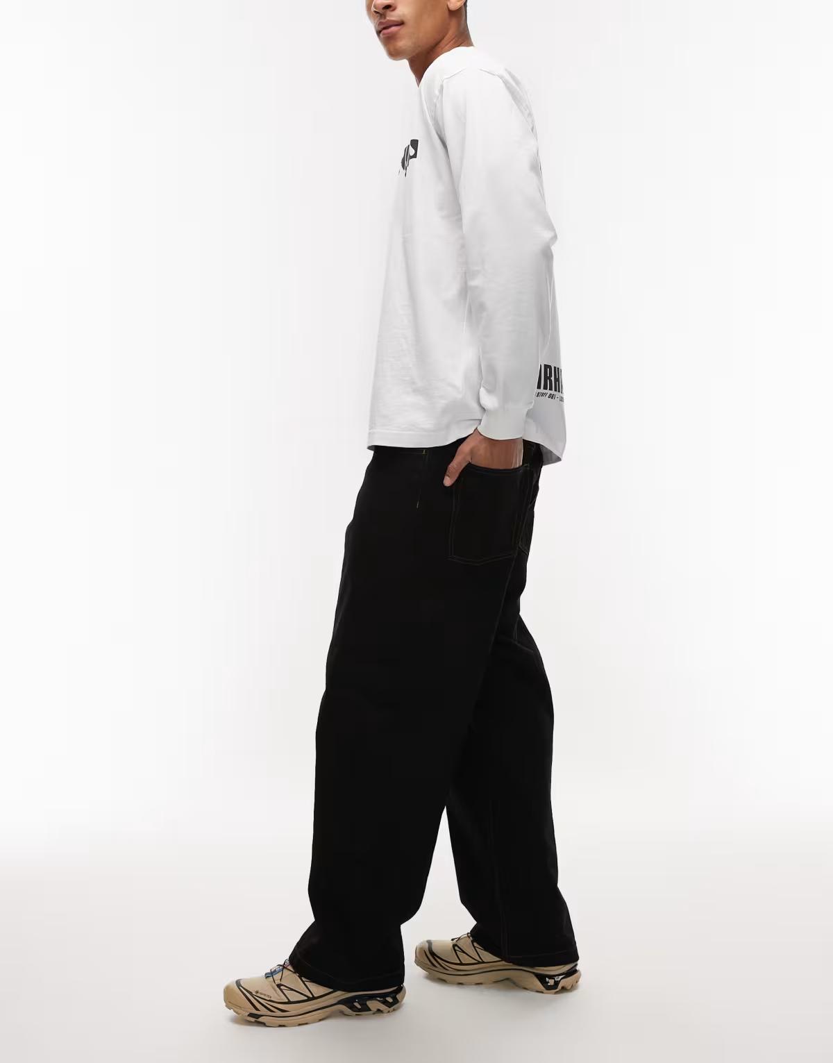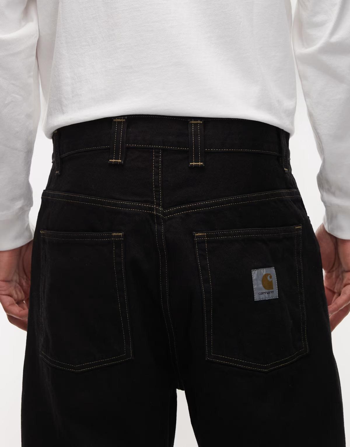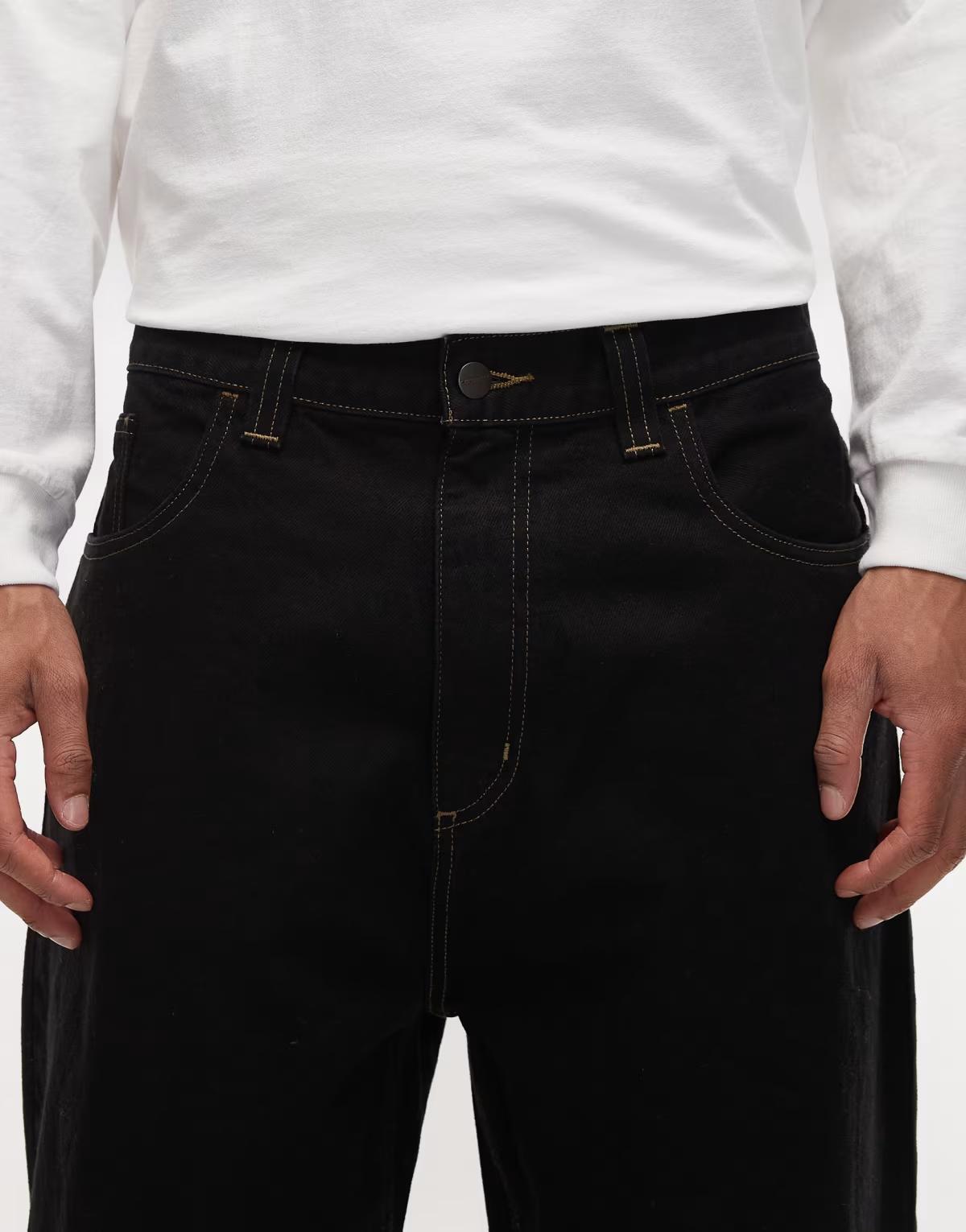 Carhartt WIP brandon loose straight fit denim jeans in black with constrast stitching
