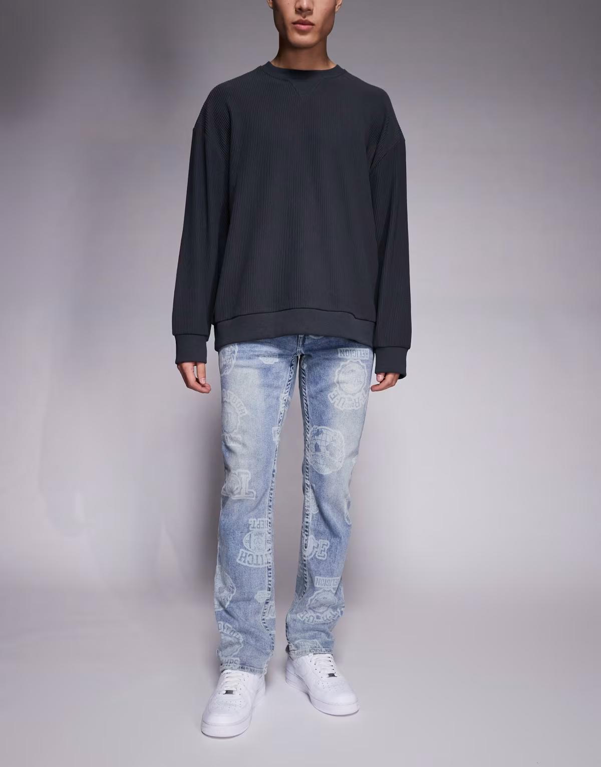 Main: 98% Cotton, 2% Spandex.Founded in 2002 by Jeffrey Lubell with the vision of redefining premium denim, True Religion takes inspiration from 1970s style to craft vintage-inspired jeans, T-shirts and clothing with an authentic edge. Known for its iconic stitch detailing – available in three signature styles, Big-T, Super-T and Giant Big-T - True Religion brings a unique identity to every piece. Discover our True Religion edit at ASOS and explore denim with a difference.
