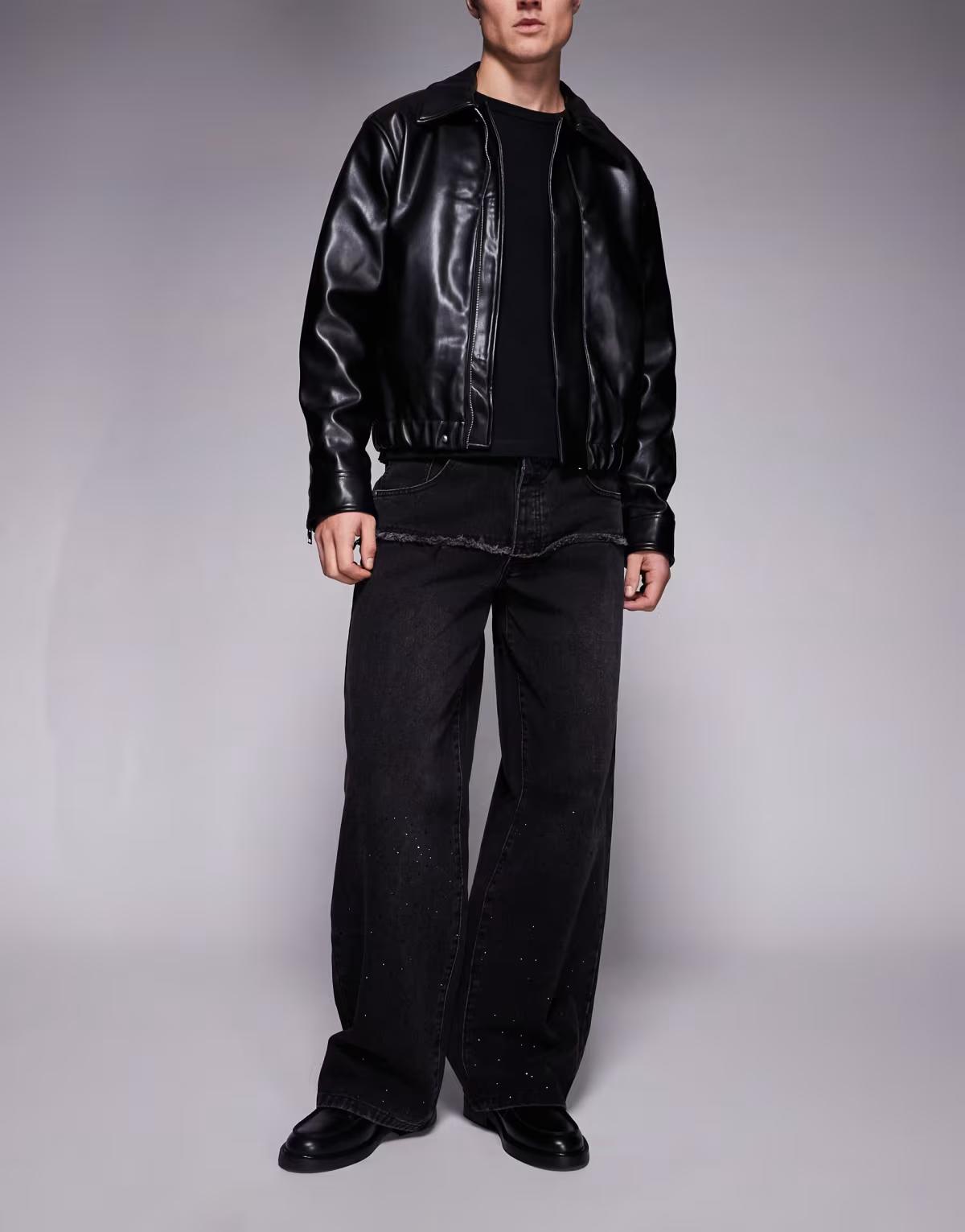 Liquor N Poker baggy embellished jeans in black