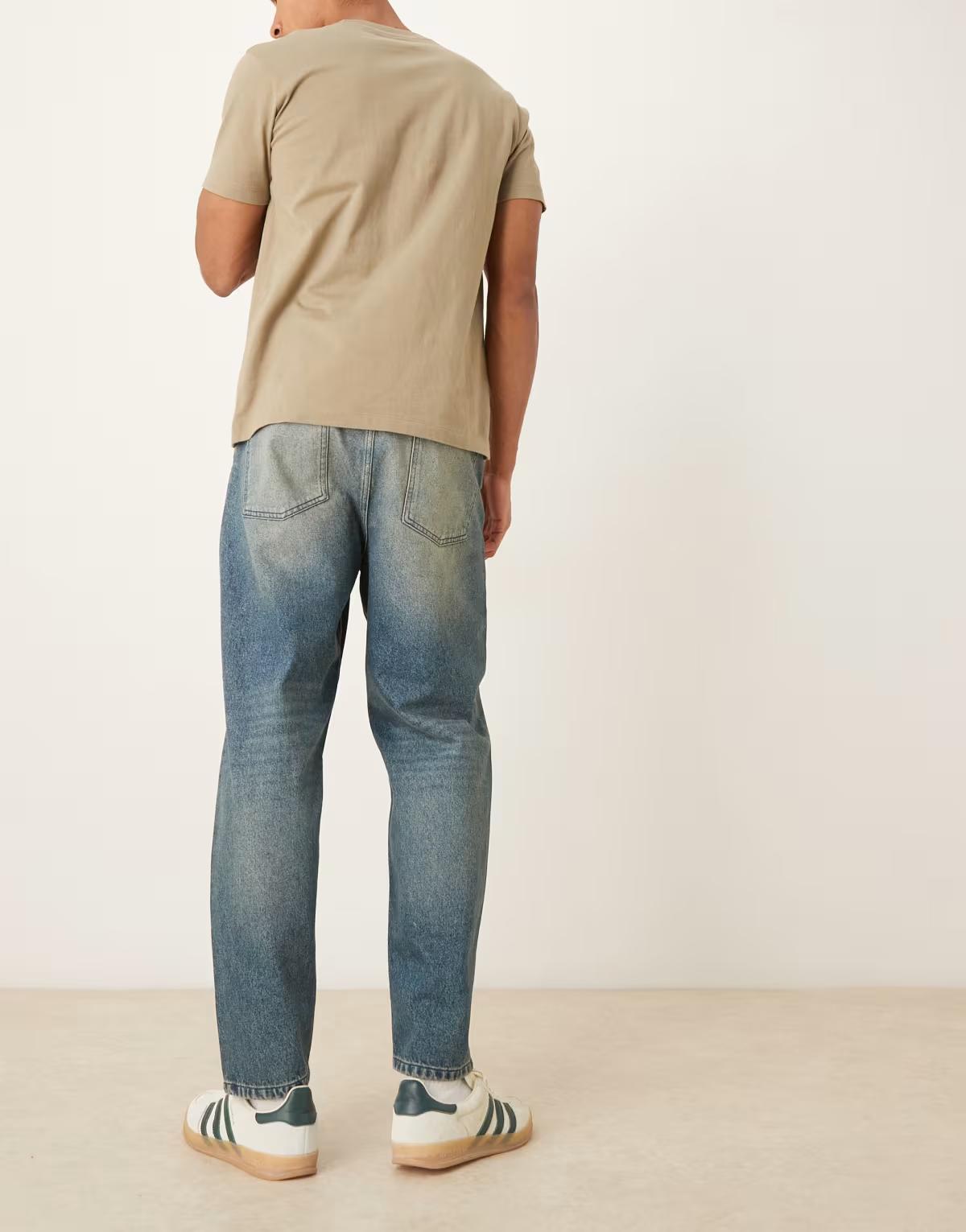 ASOS DESIGN relaxed tapered jeans in dark wash blue with tint