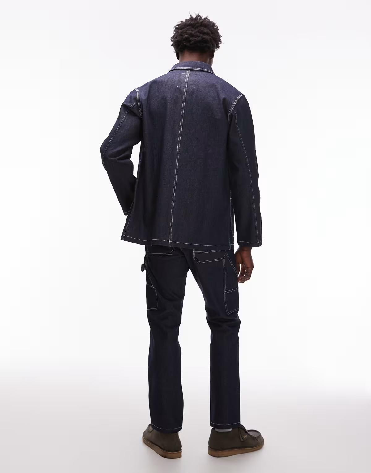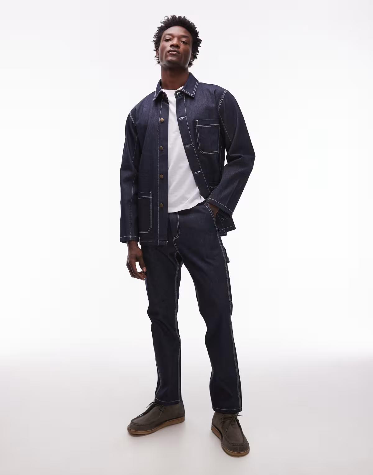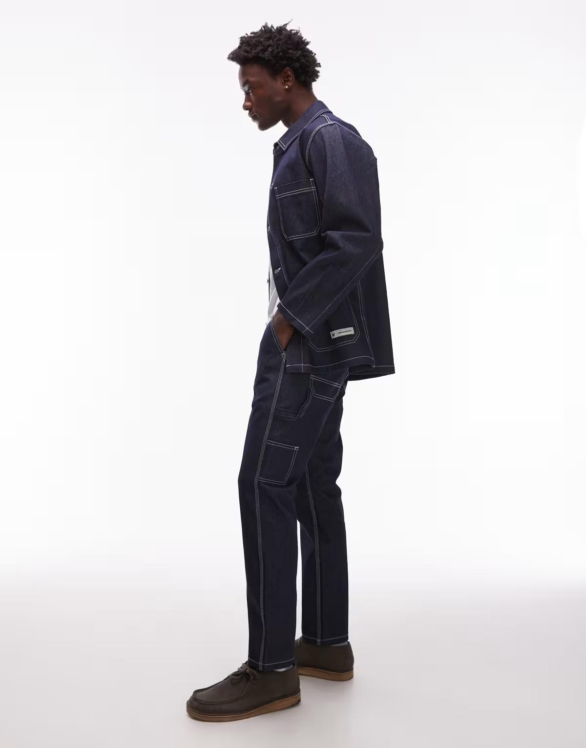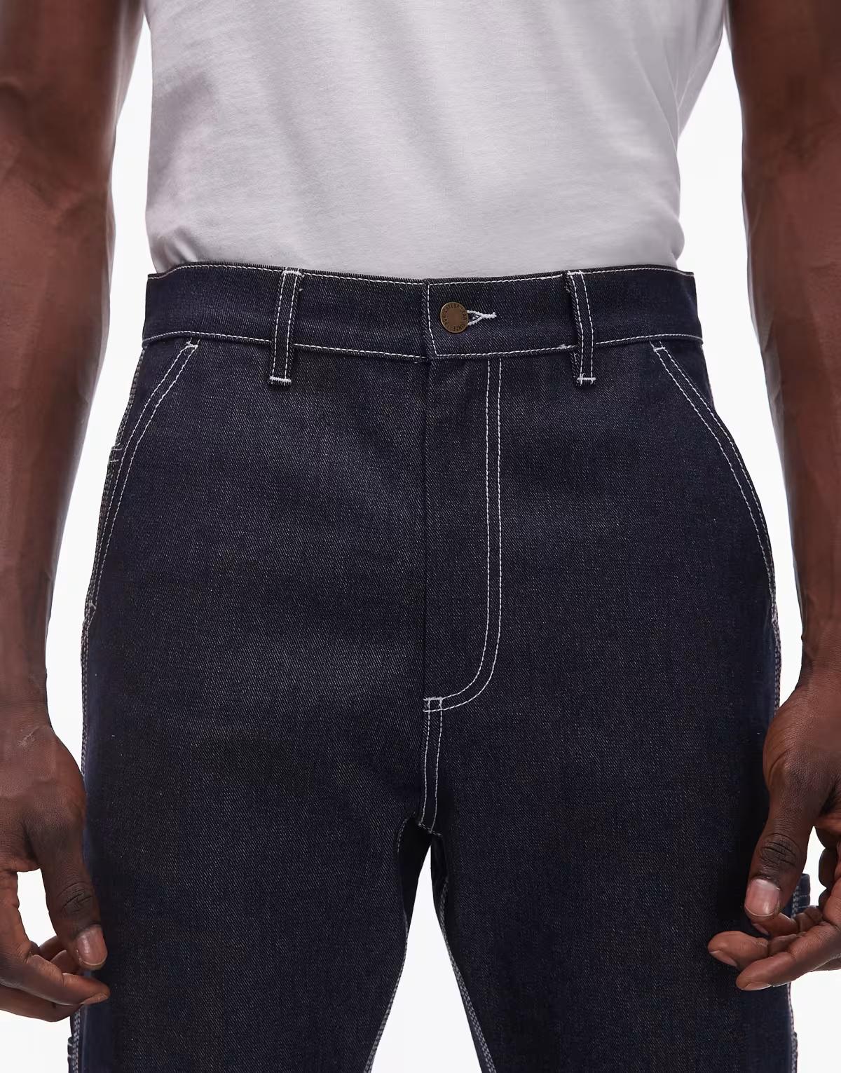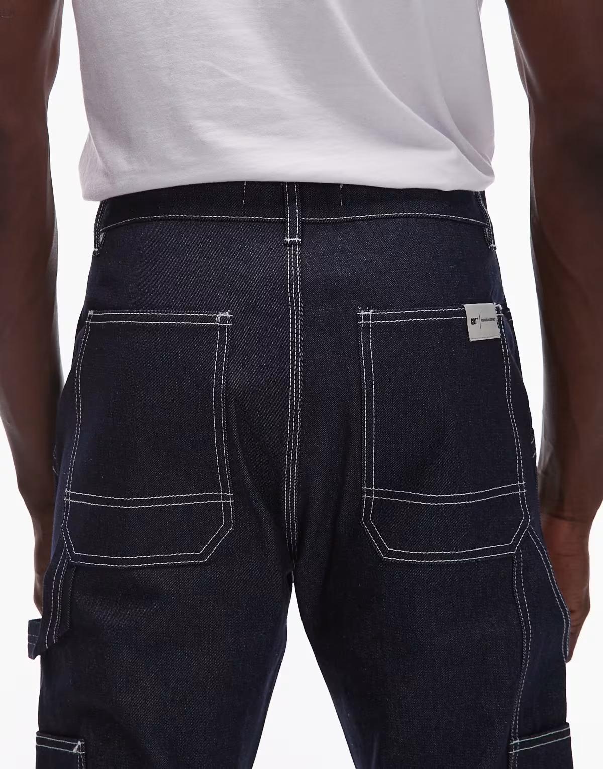 CAT WWR regular fit denim carpenter jeans with contrast stitching in dark wash blue