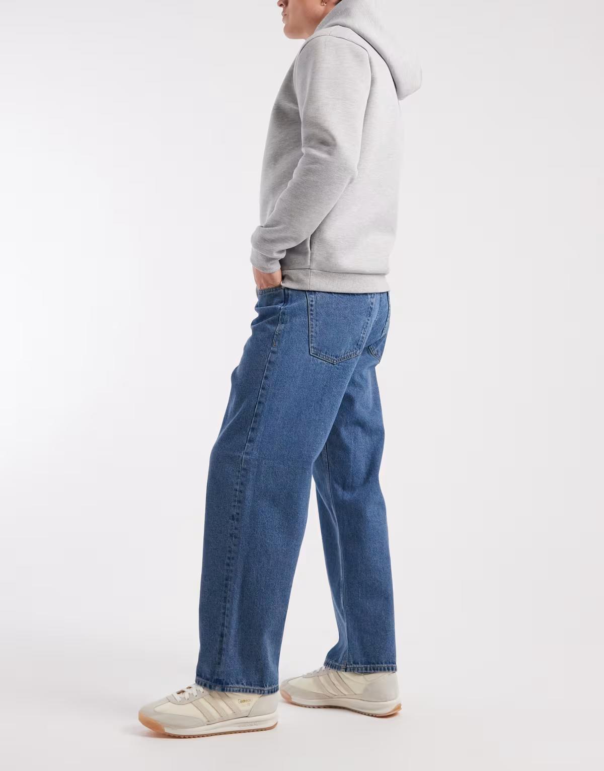 Machine wash according to instructions on care labelNon-stretch denim: mid-blue wash