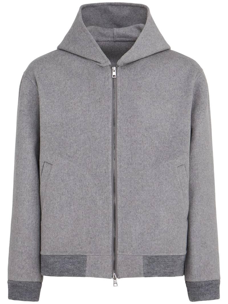 羊毛混纺全长拉链连帽卫衣