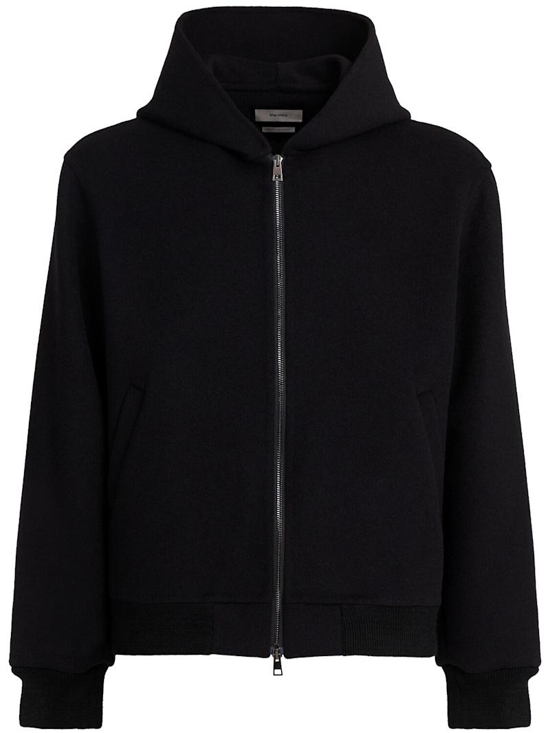 羊毛混纺全长拉链连帽卫衣 - 黑色 - 男士 - The Core - 不可拆卸的风帽.