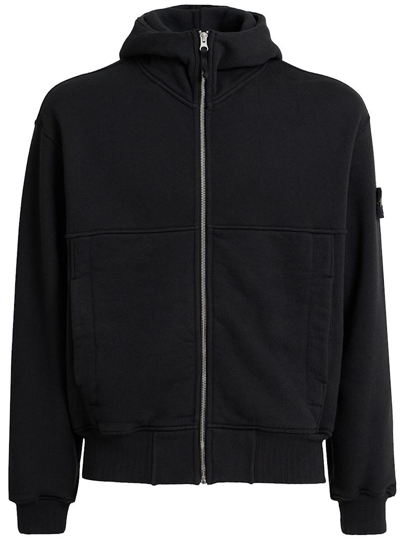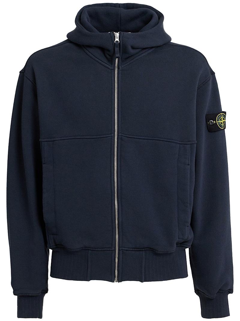 厚重棉质连帽卫衣 - 海军蓝 - 男士 - Stone Island - 不可拆卸的风帽.