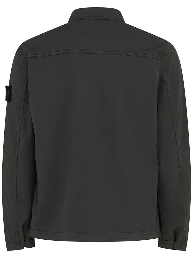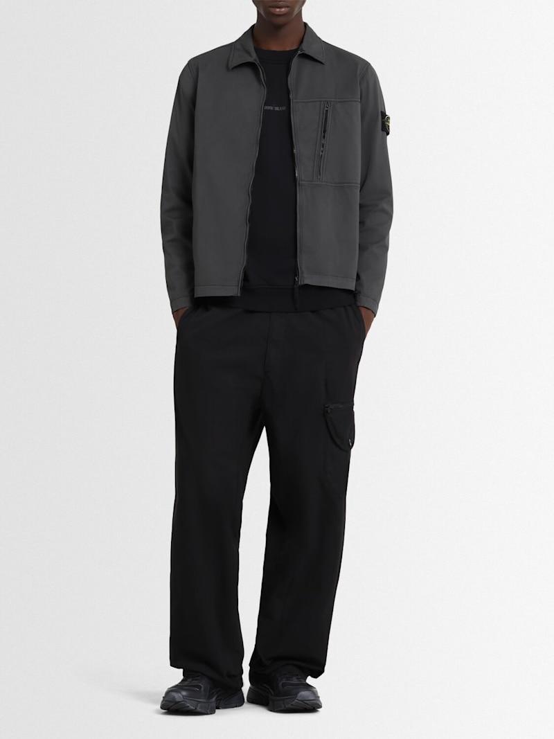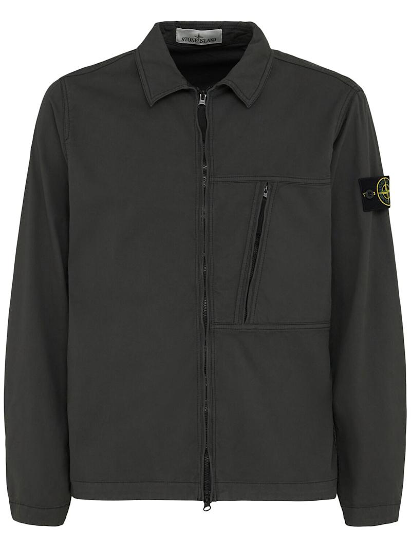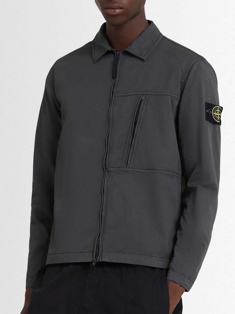 弹力棉质斜纹衬衫 - Lead Grey - 男士 - Stone Island - 正面拉链开合.