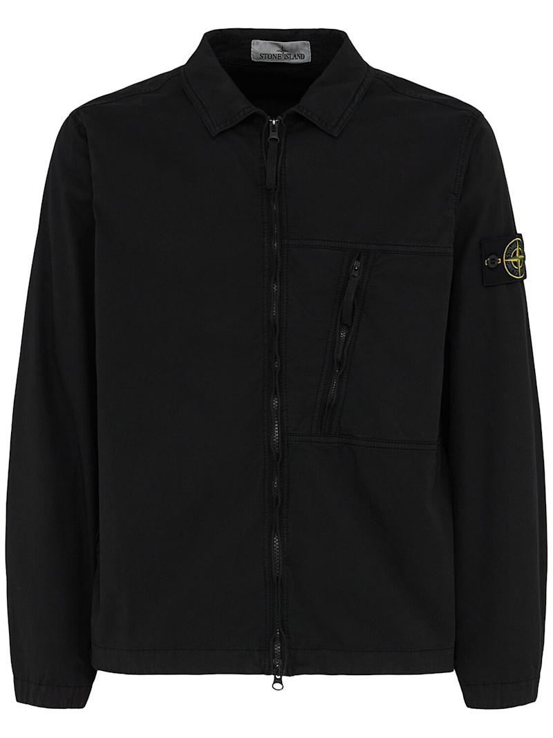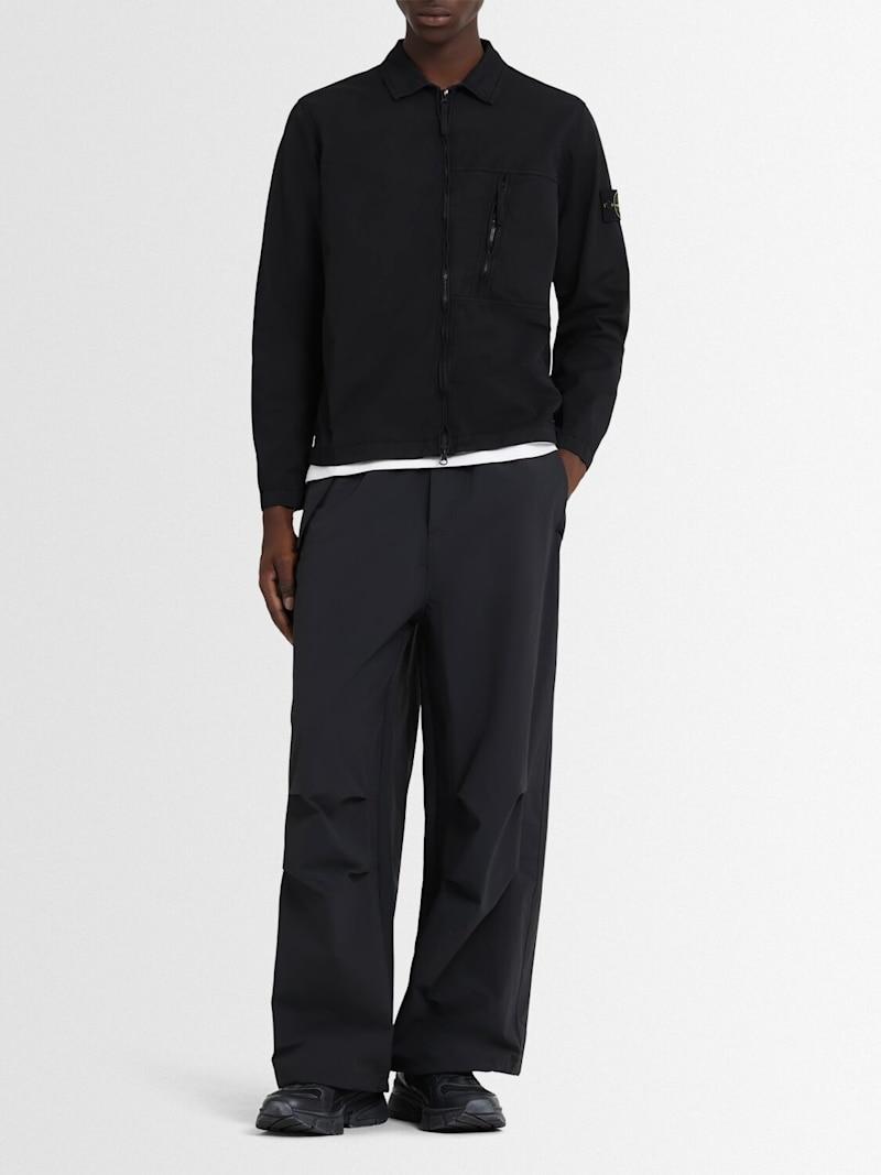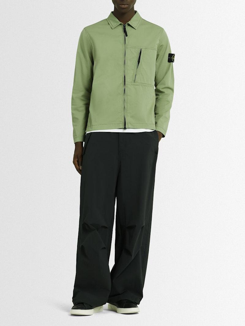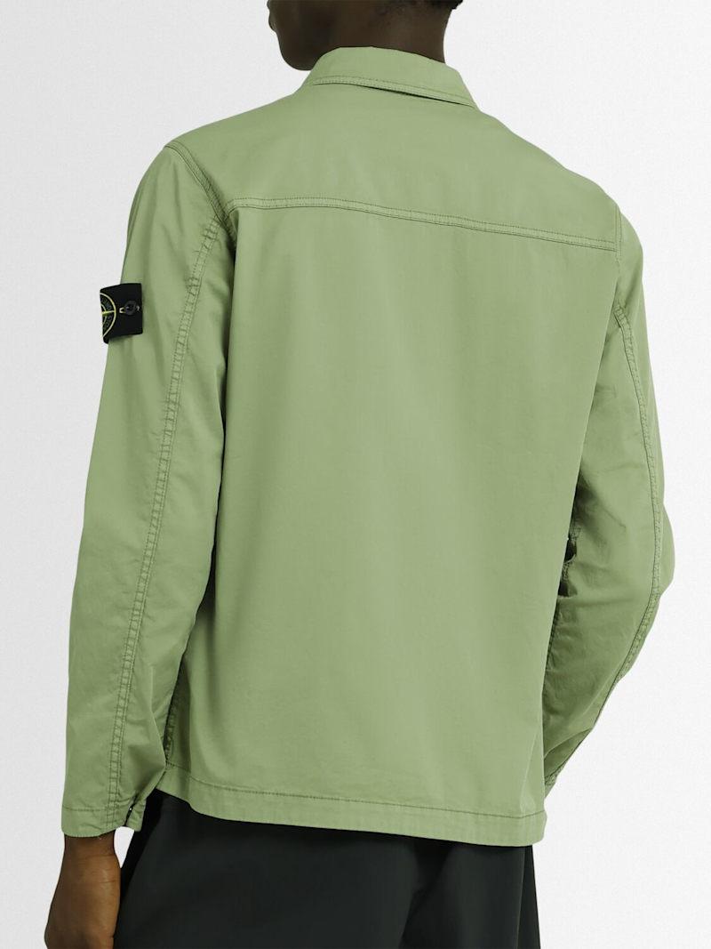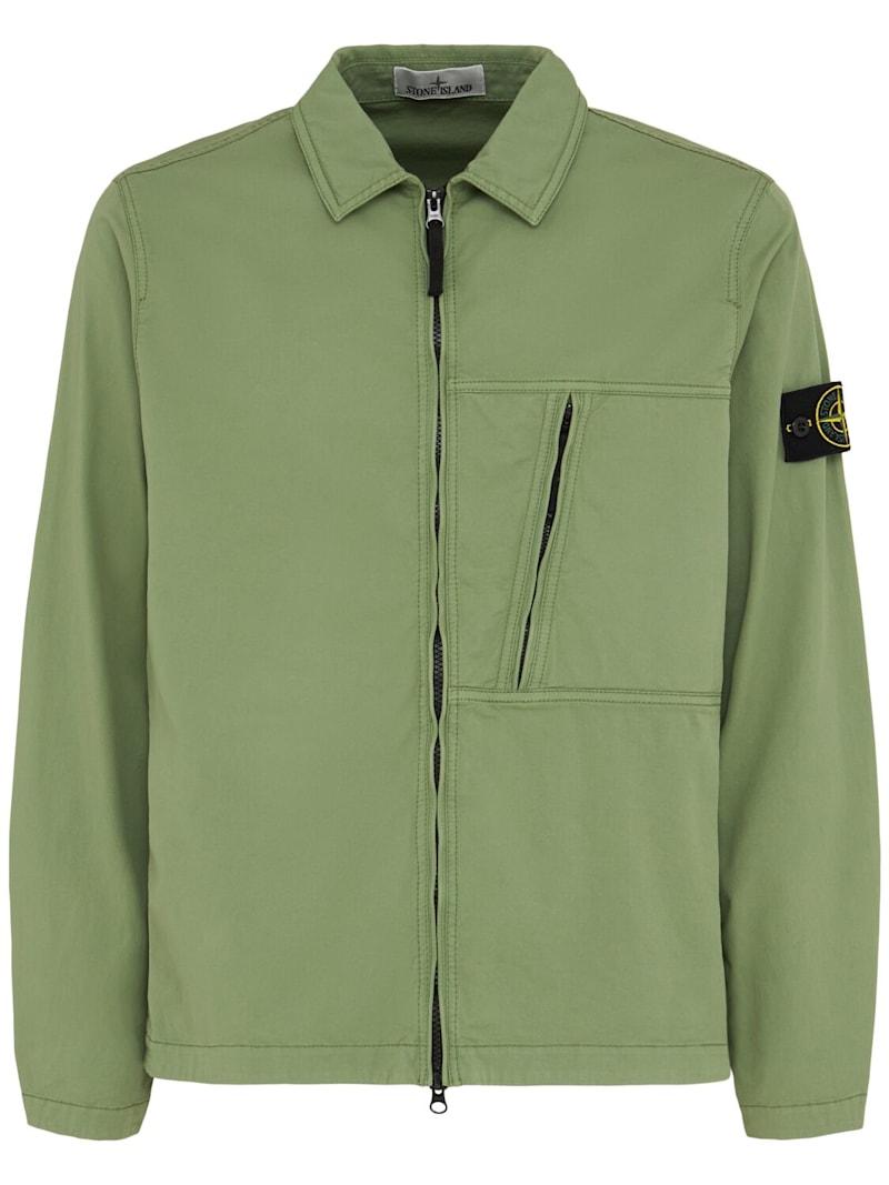 弹力棉质斜纹衬衫 - Lead Grey - 男士 - Stone Island - 正面拉链开合.