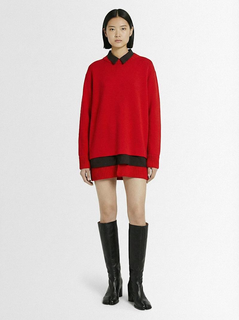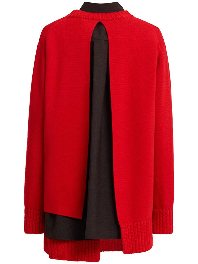 羊毛针织迷你连衣裙 - 红色/多色 - 女士 - Sacai - 罗纹领口、袖口和下摆.