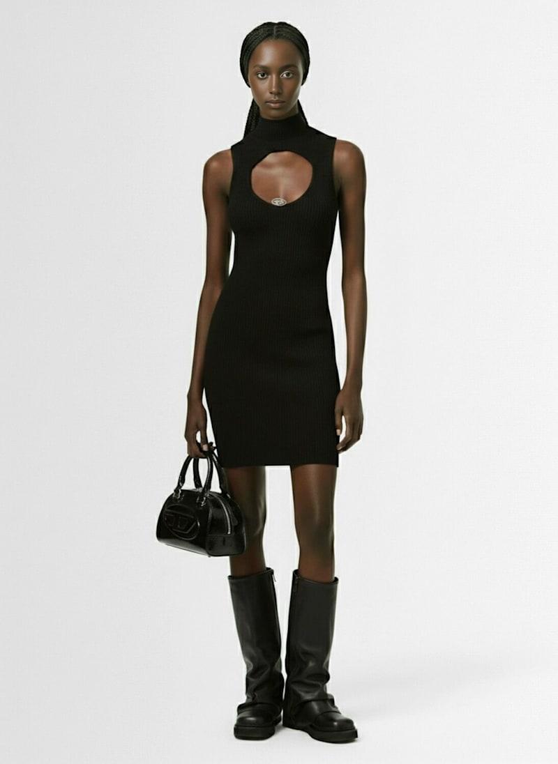 M-oloni罗纹羊毛迷你连衣裙 - 黑色 - 女士 - Diesel - 正面镂空配有金属logo细节