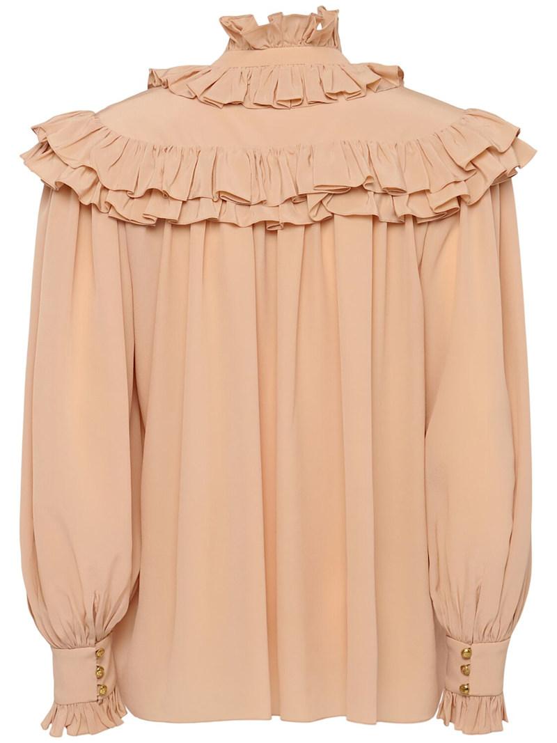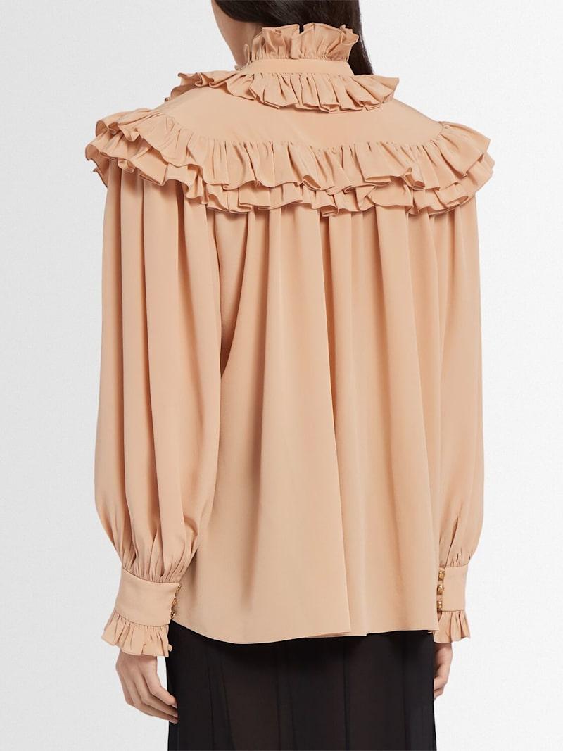 褶饰真丝衬衫 - 米黄色/棕色 - 女士 - Chloé - 系结领.