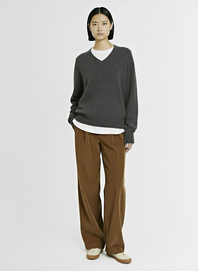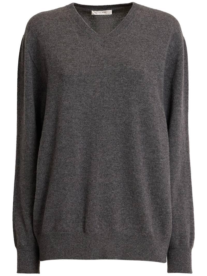 Ligeia羊绒针织V领毛衣 - 灰色 - 女士 - The Row - 罗纹领口、袖口和下摆