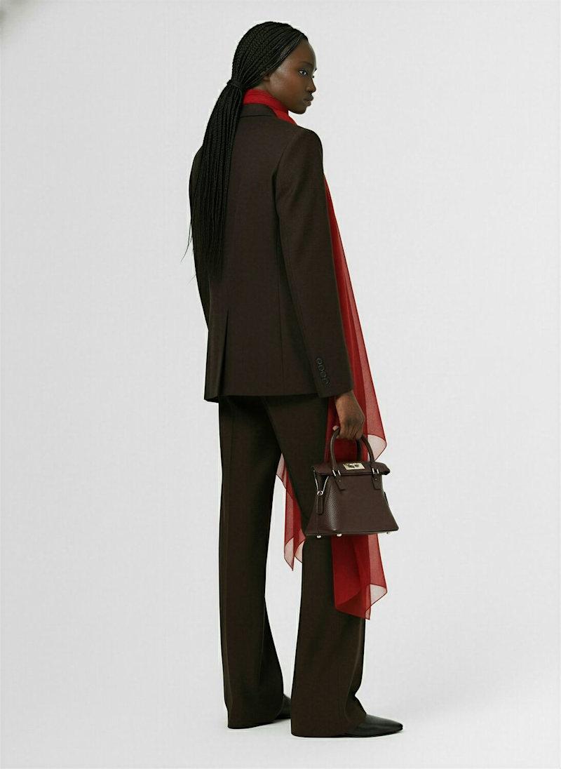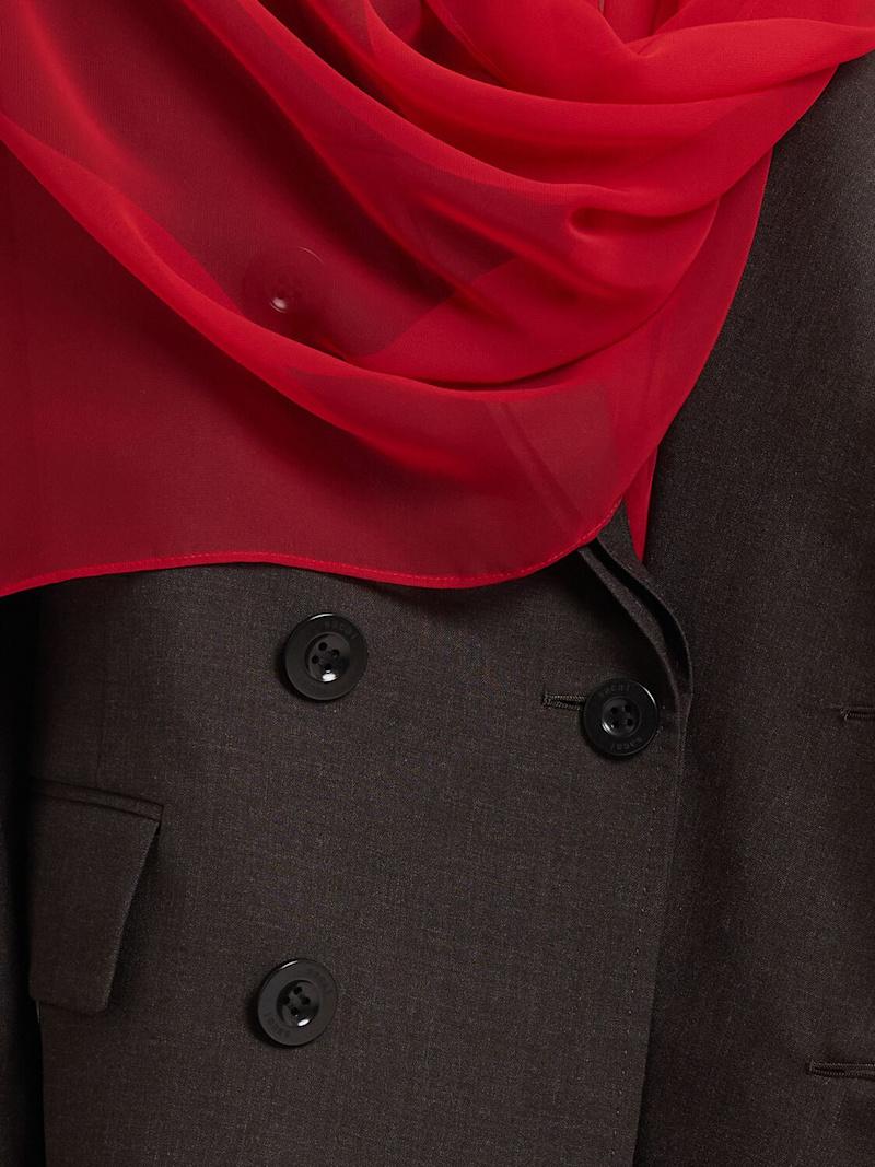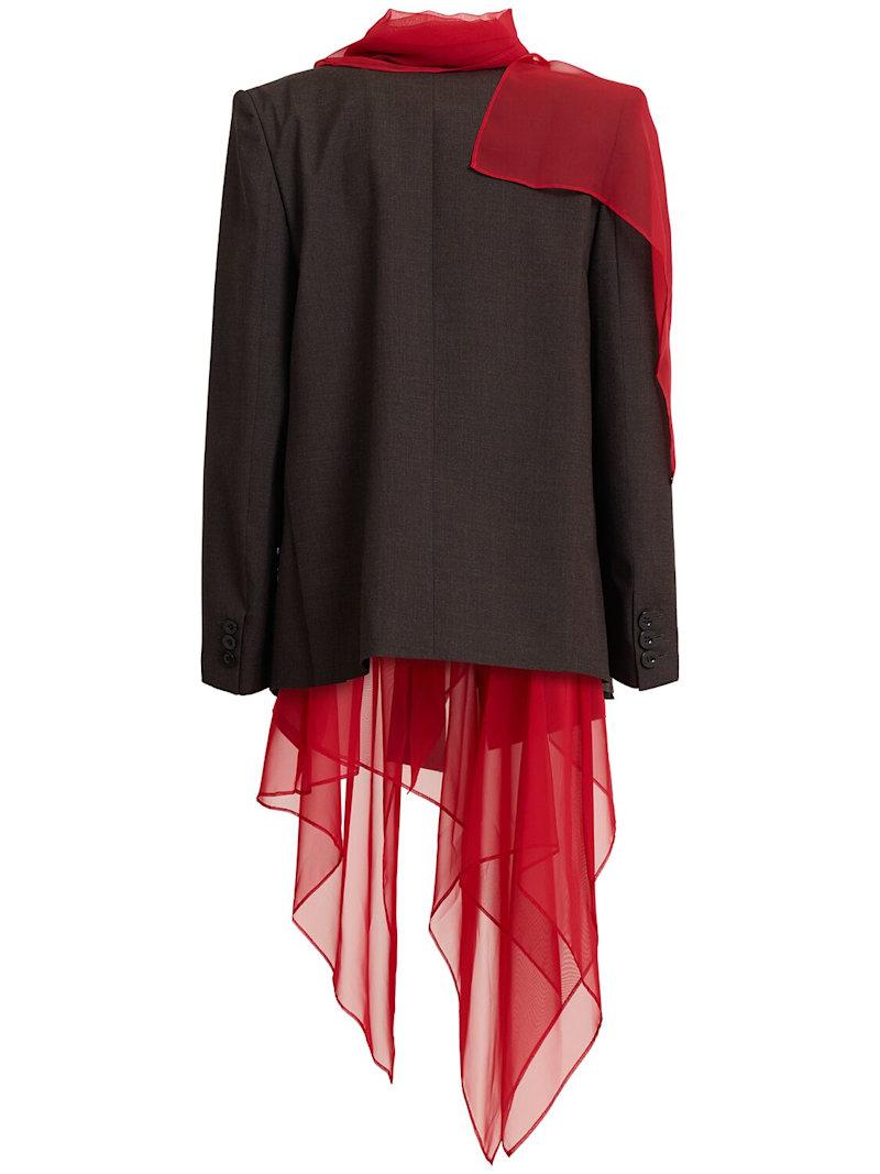 拖尾羊毛夹克 - 棕色/红色 - 女士 - Sacai - 正面纽扣开合.