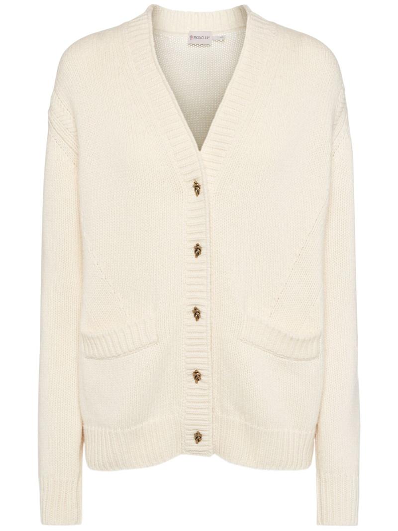 羊毛&羊绒V领开衫 - 白色 - 女士 - Moncler - 采用羊毛和羊绒混纺织物制作.