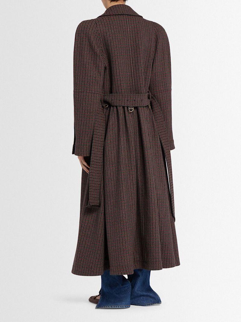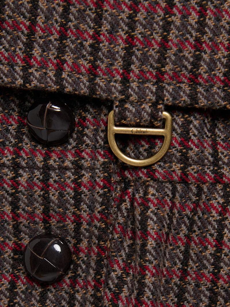 系腰带羊毛混纺大衣 - Grey - Red 1 - 女士 - Chloé - 正面纽扣开合.