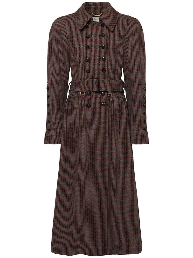 系腰带羊毛混纺大衣