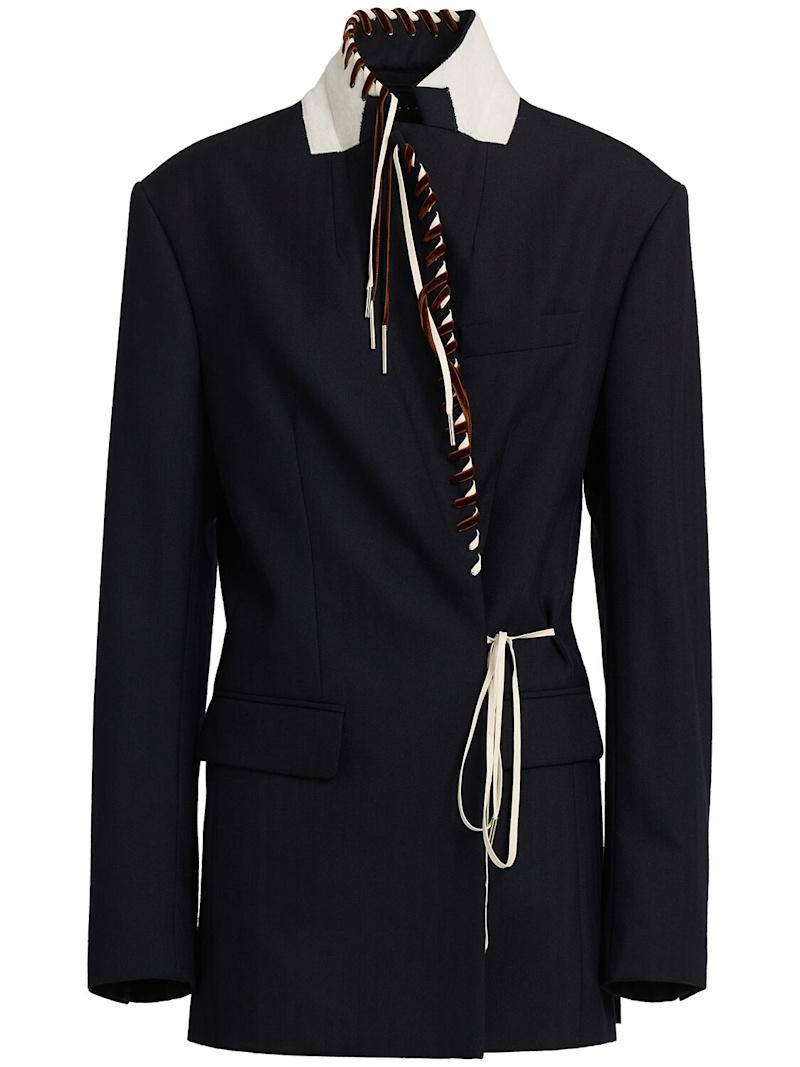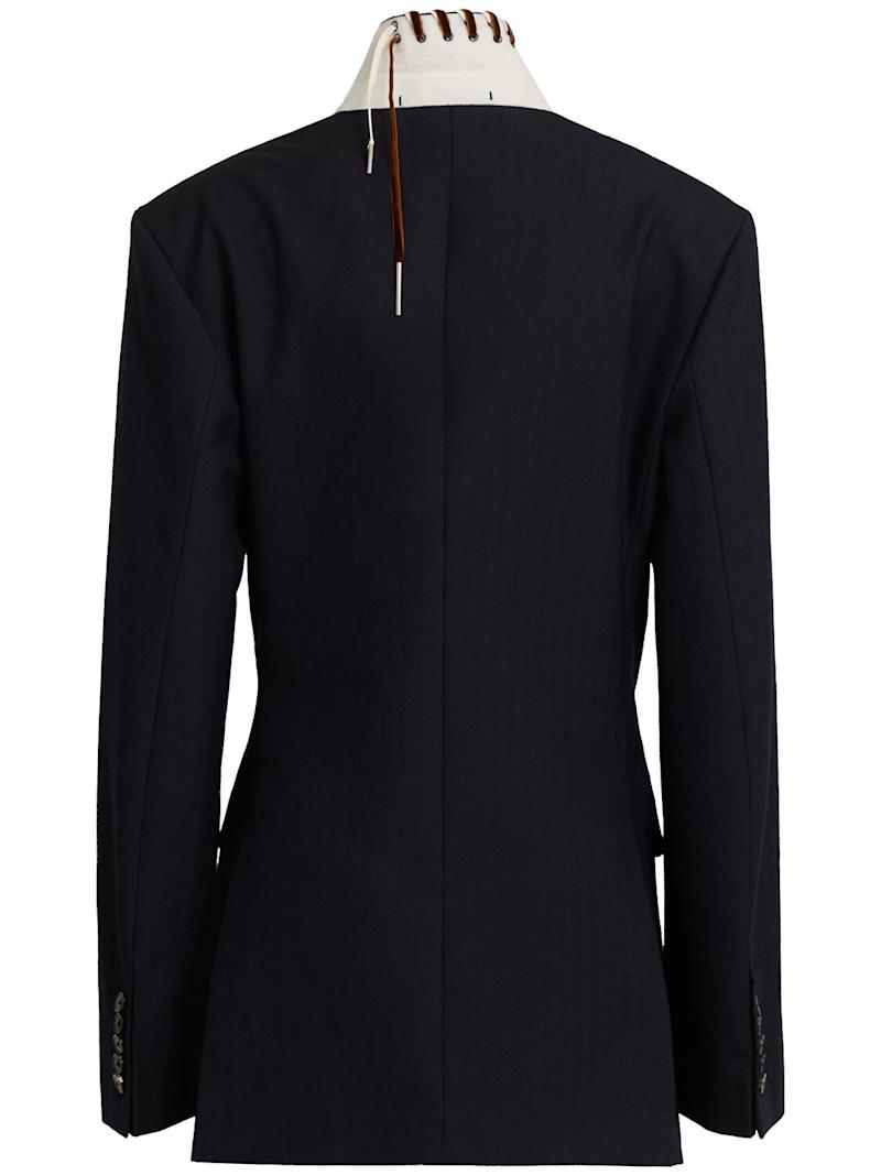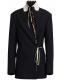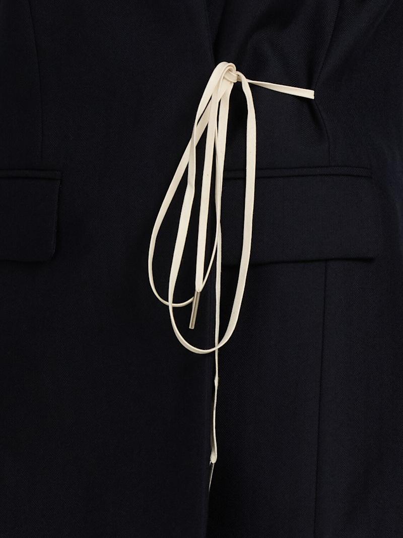 Baftan刺绣羊毛西服夹克 - 海军蓝/多色 - 女士 - Dries Van Noten - 正面绑带式开合.