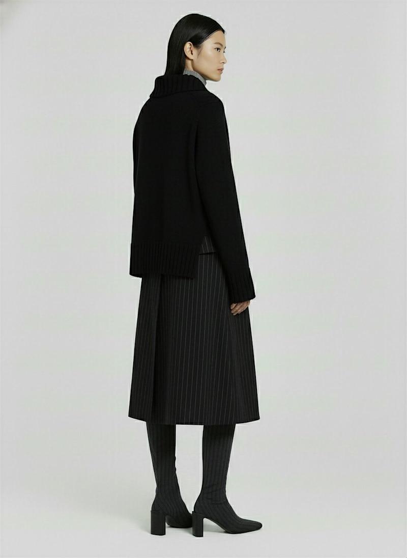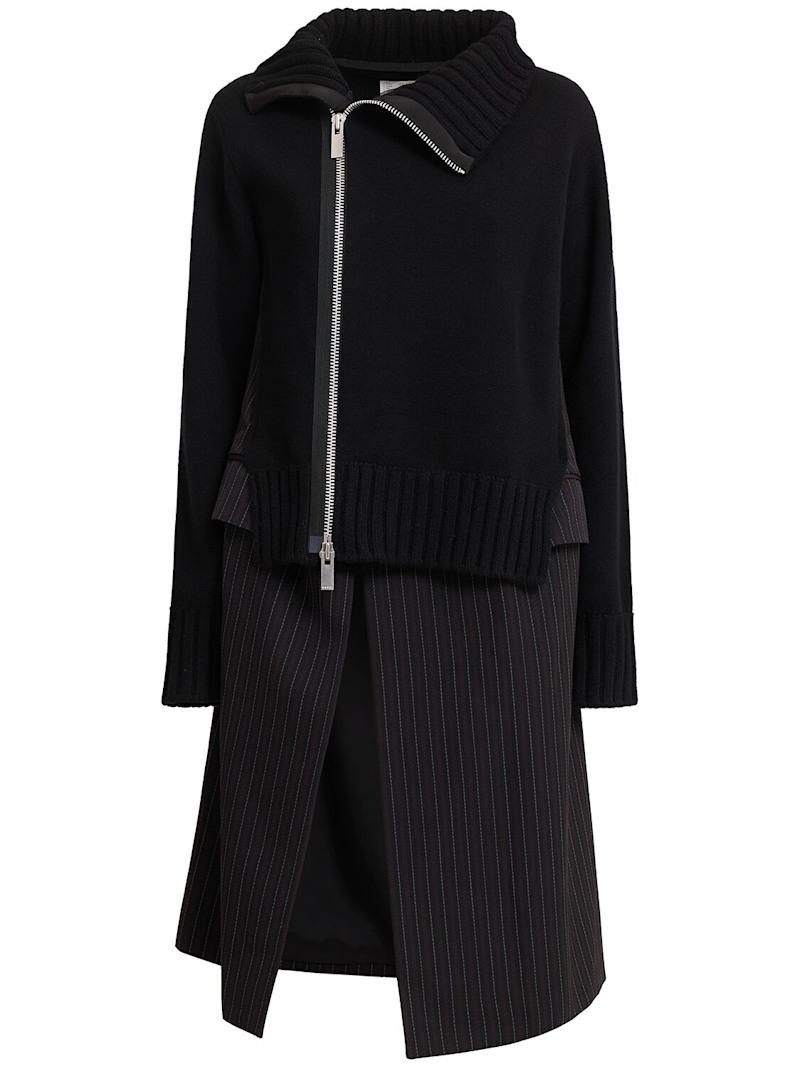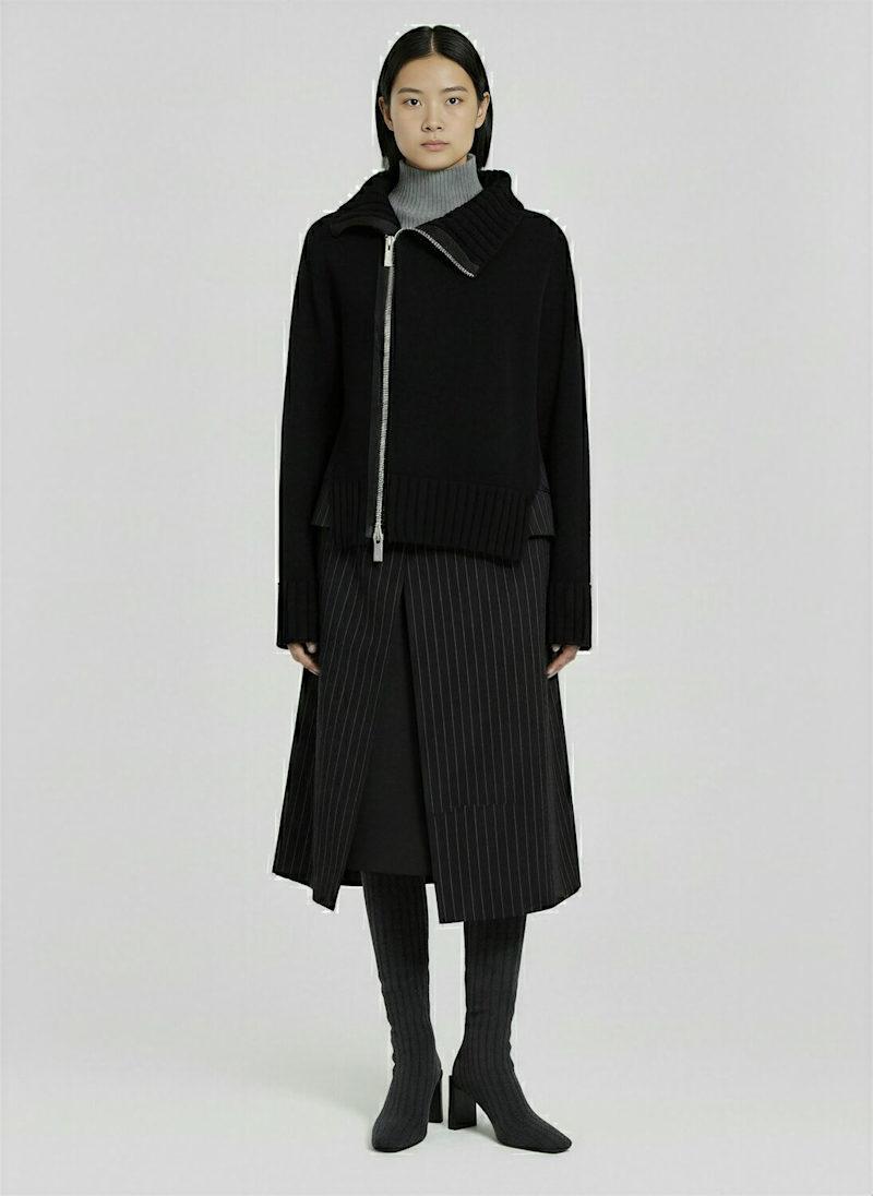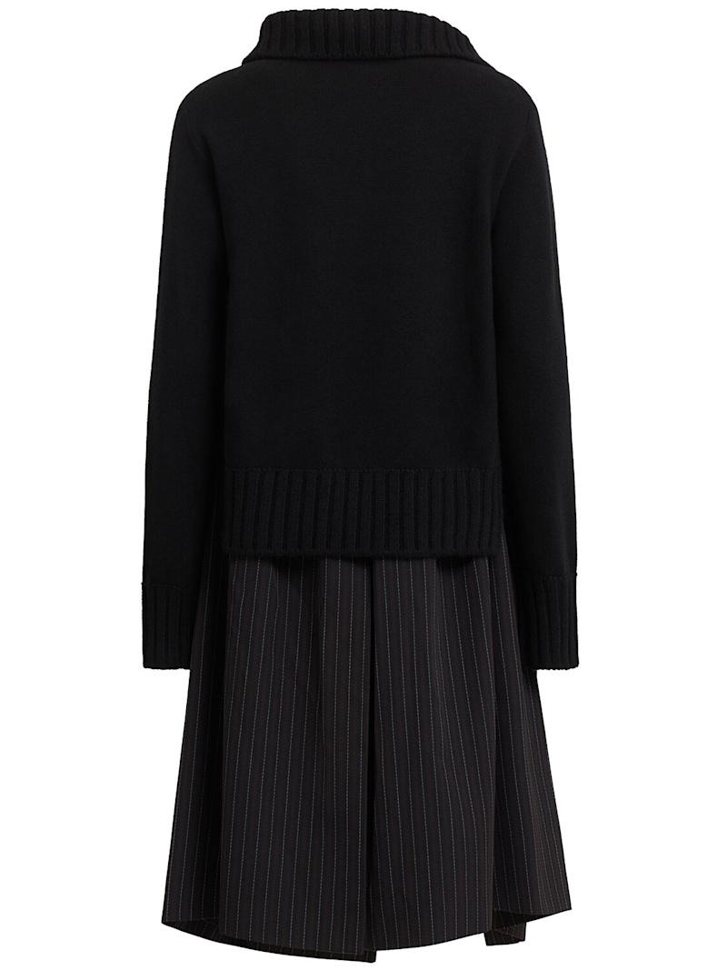 羊毛针织迷笛连衣裙 - 黑色 - 女士 - Sacai - 罗纹领口、袖口和下摆.