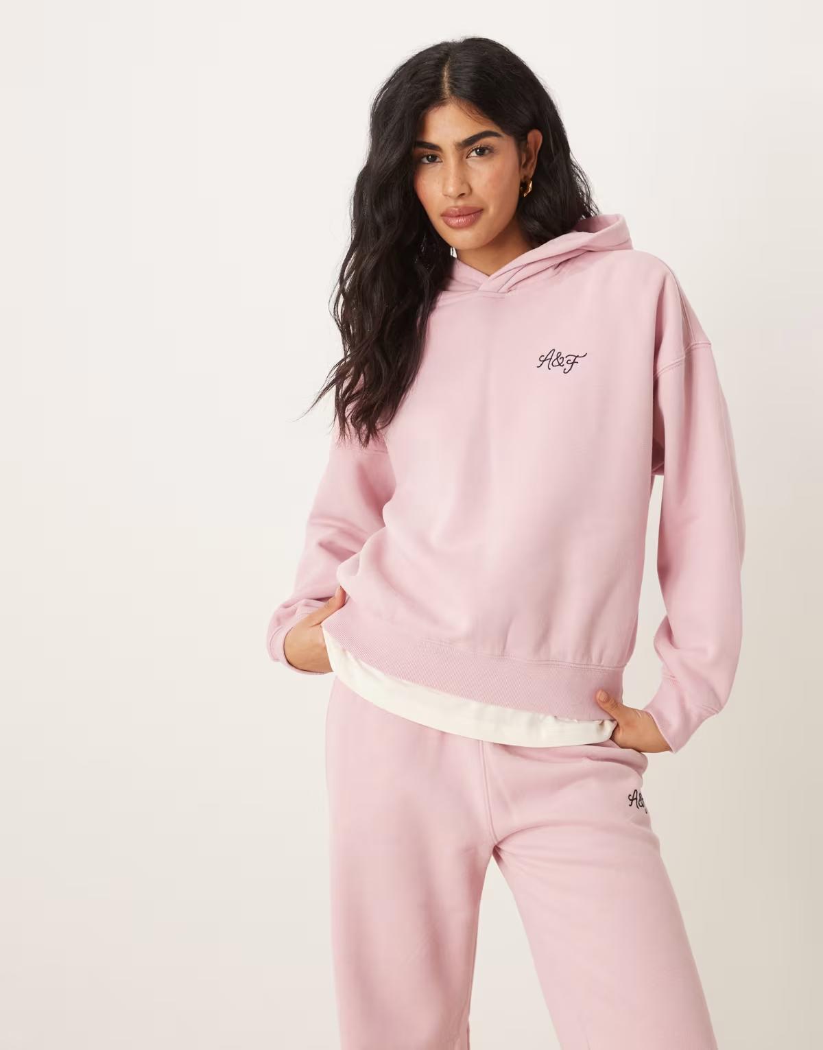 Abercrombie & Fitch chest logo hoodie co-ord in pink