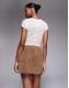Kaiia exclusive faux suede wrap detail mini skirt co-ord in tan