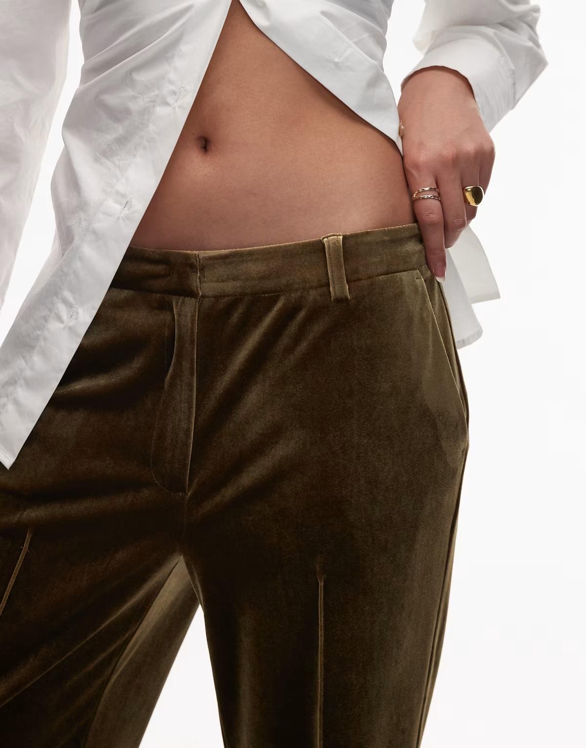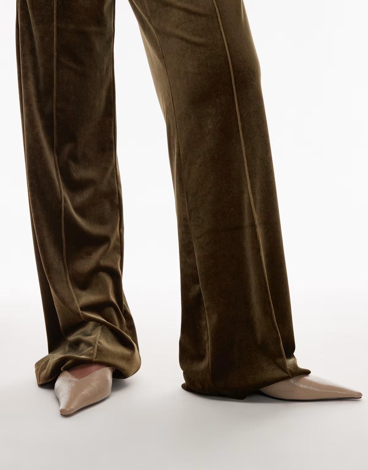 ASOS DESIGN tailored velvet slim straight trousers in olive