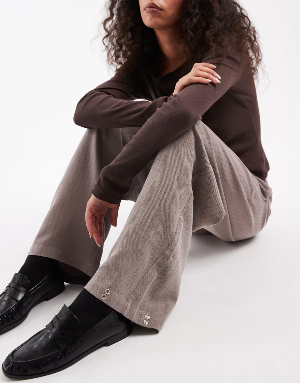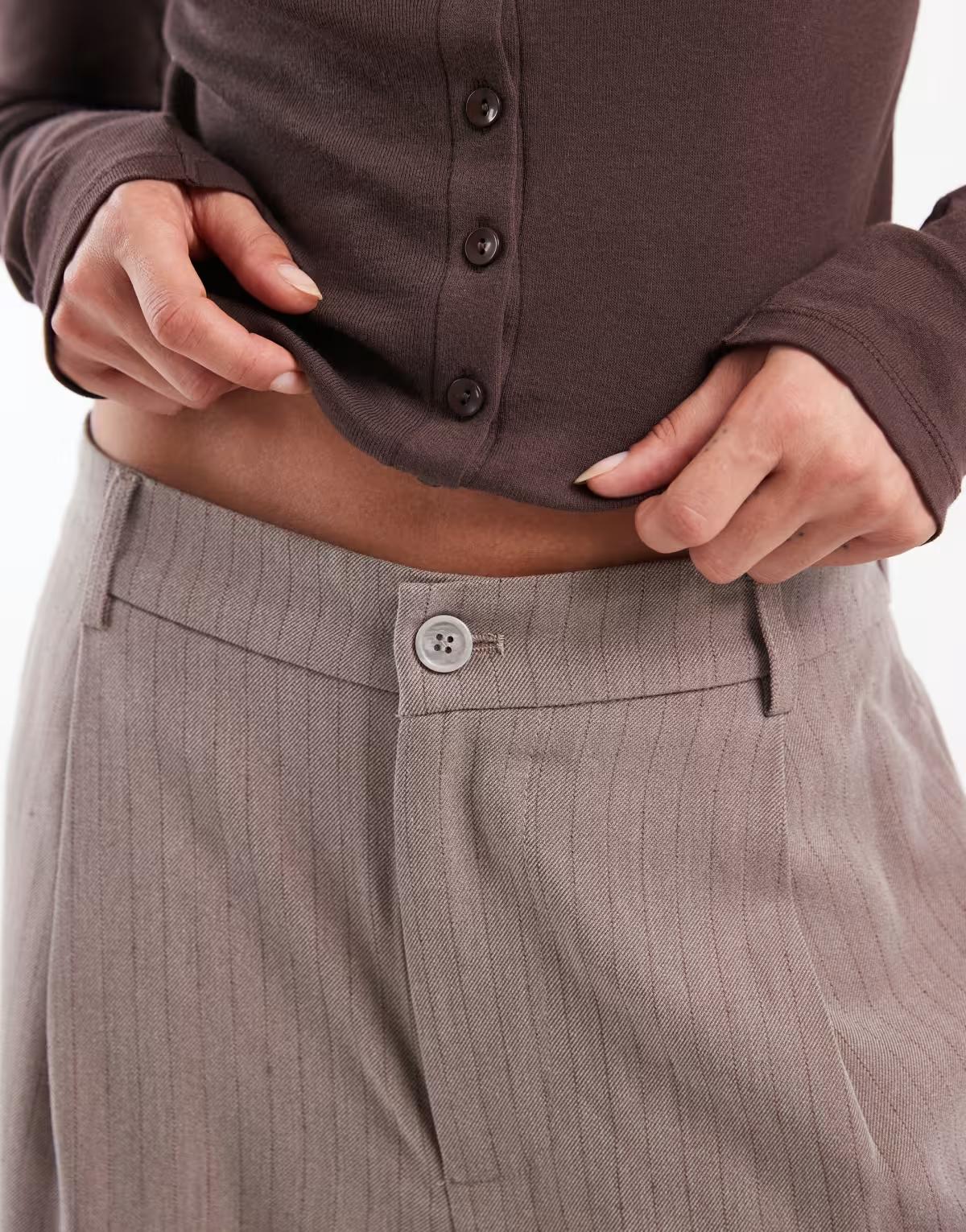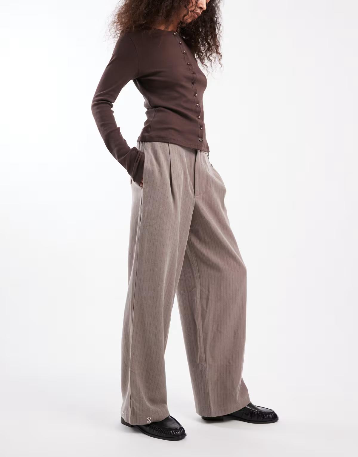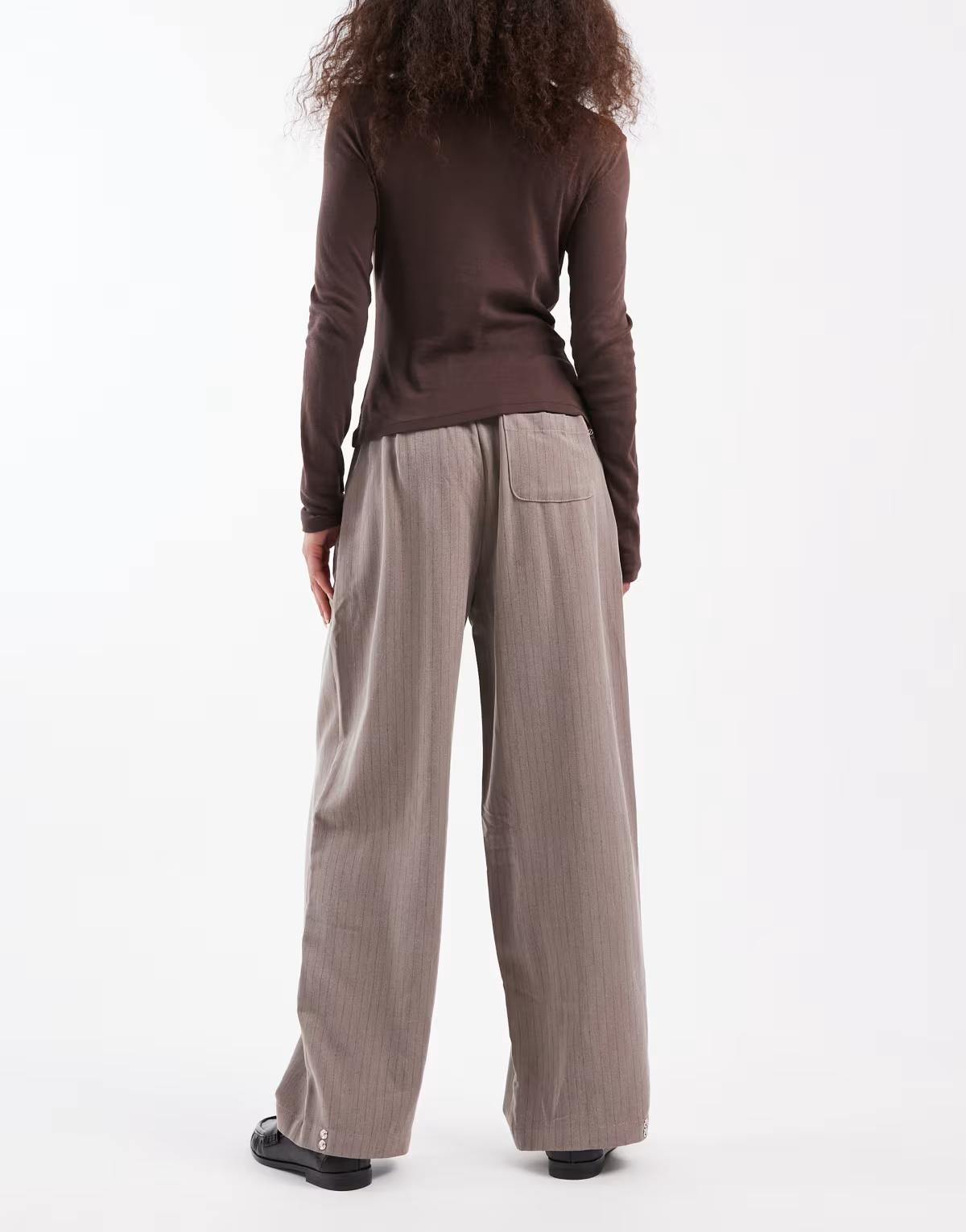 Daisy Street wide leg tapered trouser in grey pinstripe