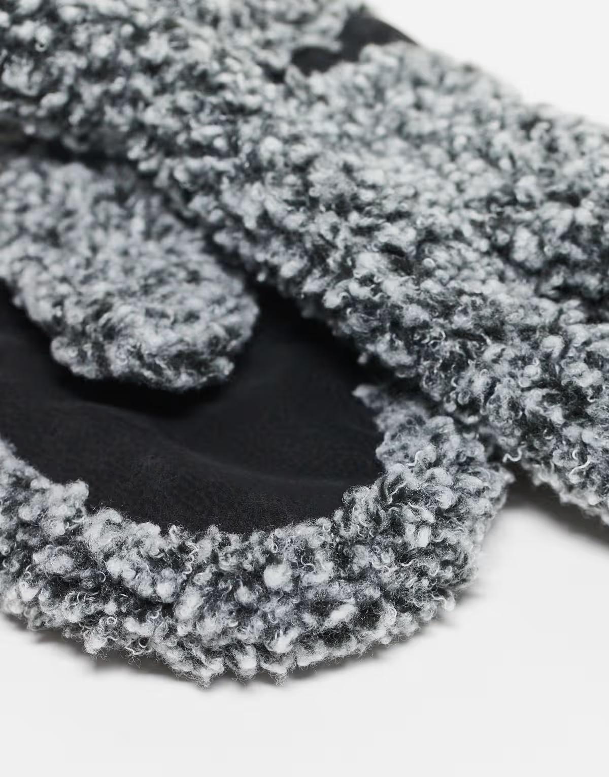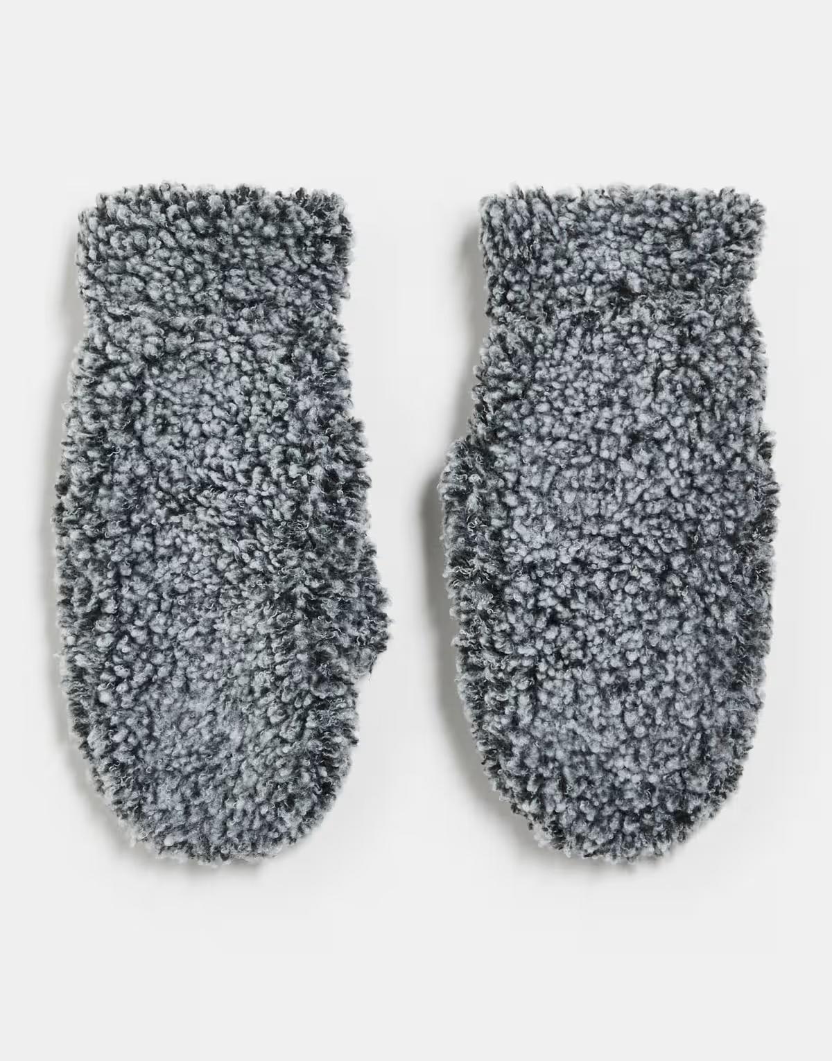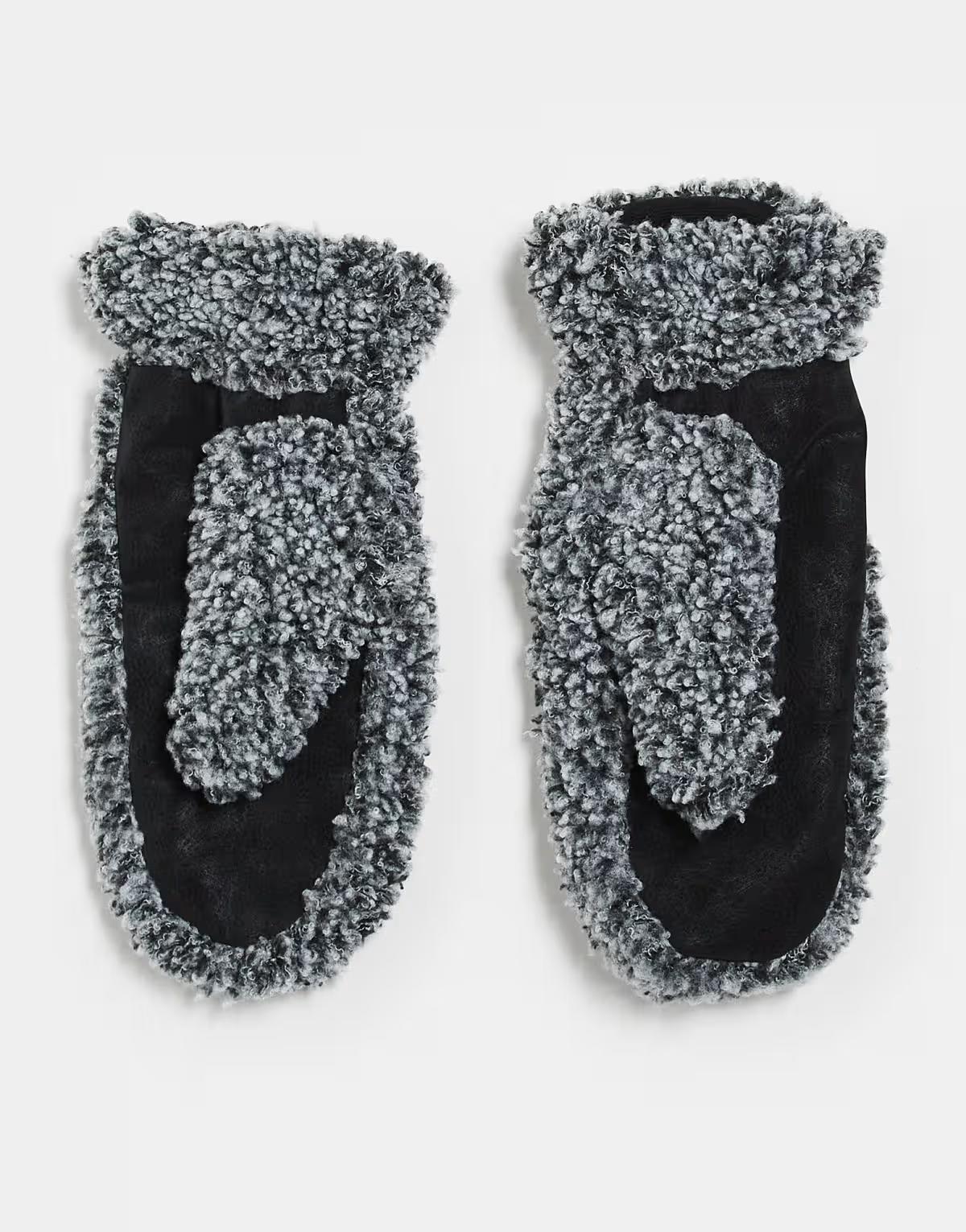 Weekday shearling mittens in grey melange