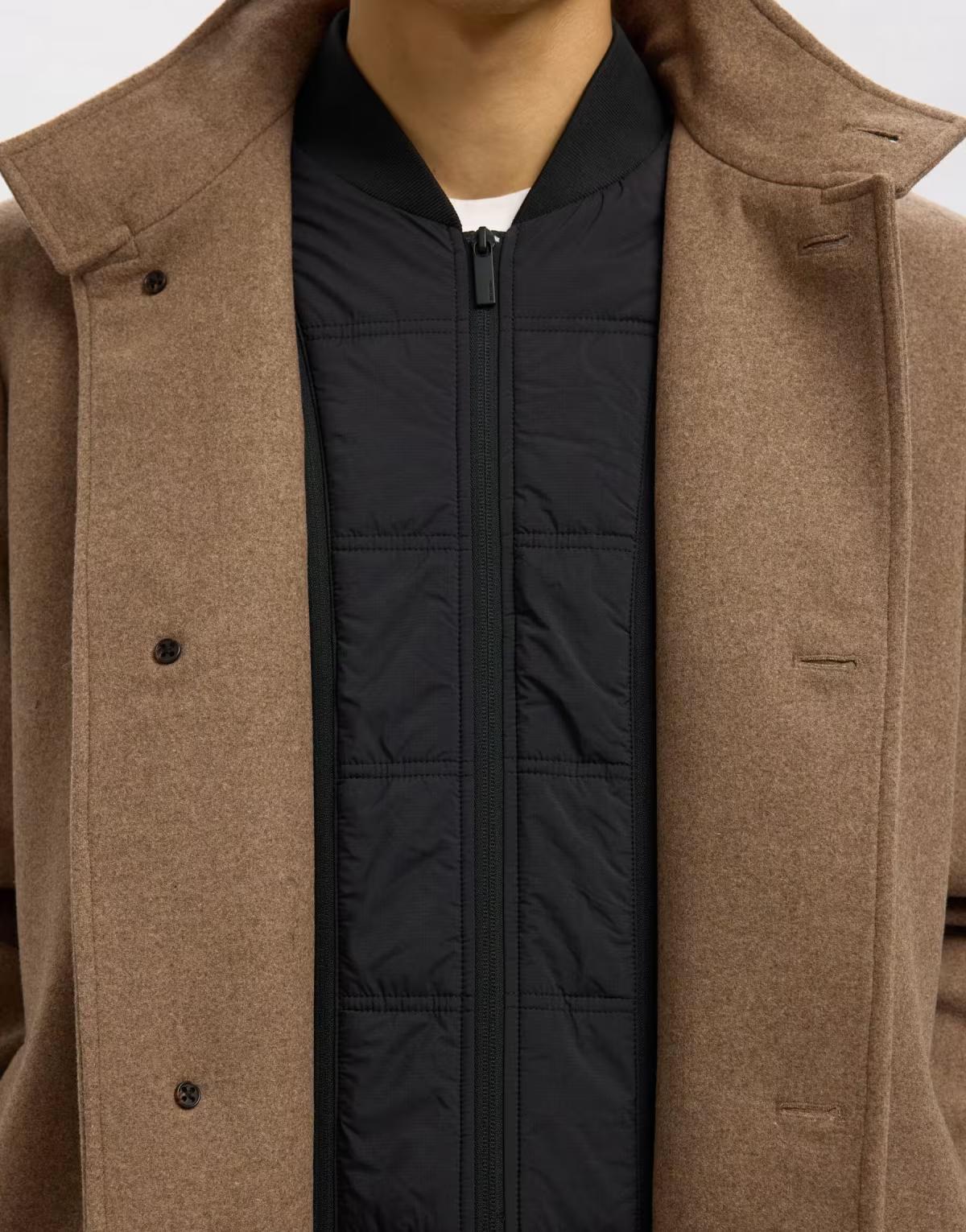 Hood Main: 50% Wool, 45% Polyester, 5% Other fibres, Lining: 100% Polyester, Lining: 100% Polyester.First launched in 1997, Selected now has a strong and respected foothold in men's fashion worldwide with a presence in 25 countries across the globe. Still continuing to stand at the forefront of men's fashion; Selected specialises in raw and simple designs that are never obviously trend-driven, but always edgy, elegant and masculine with focus on attention to detail.