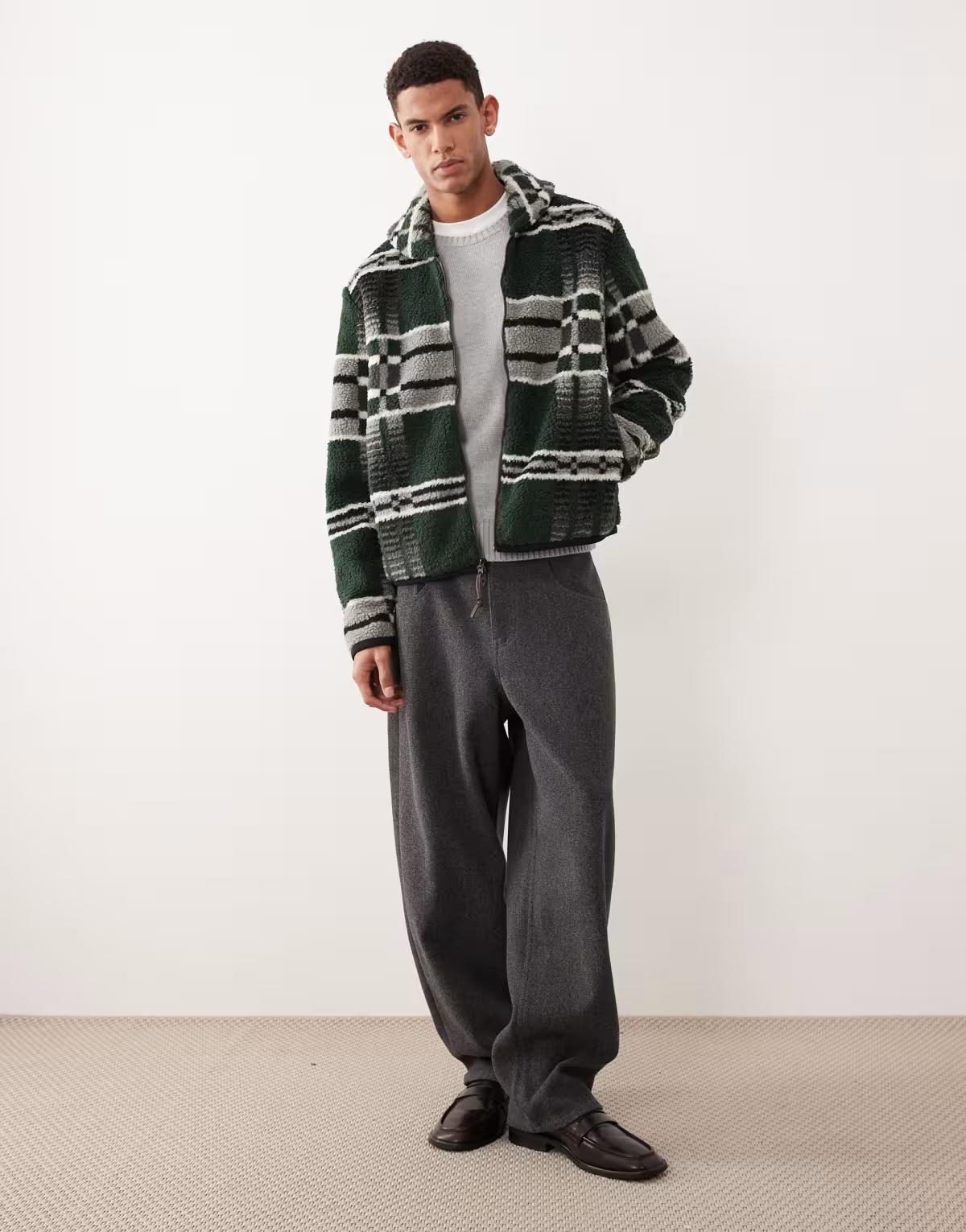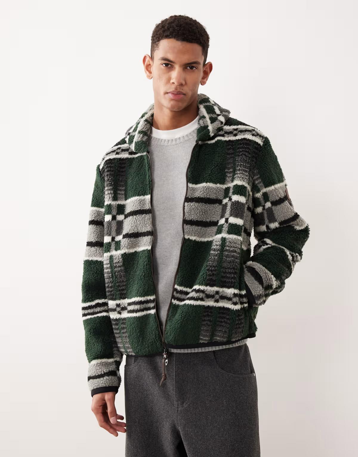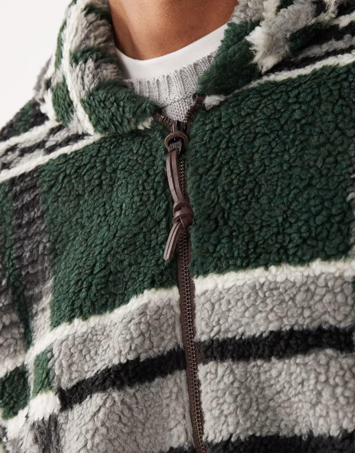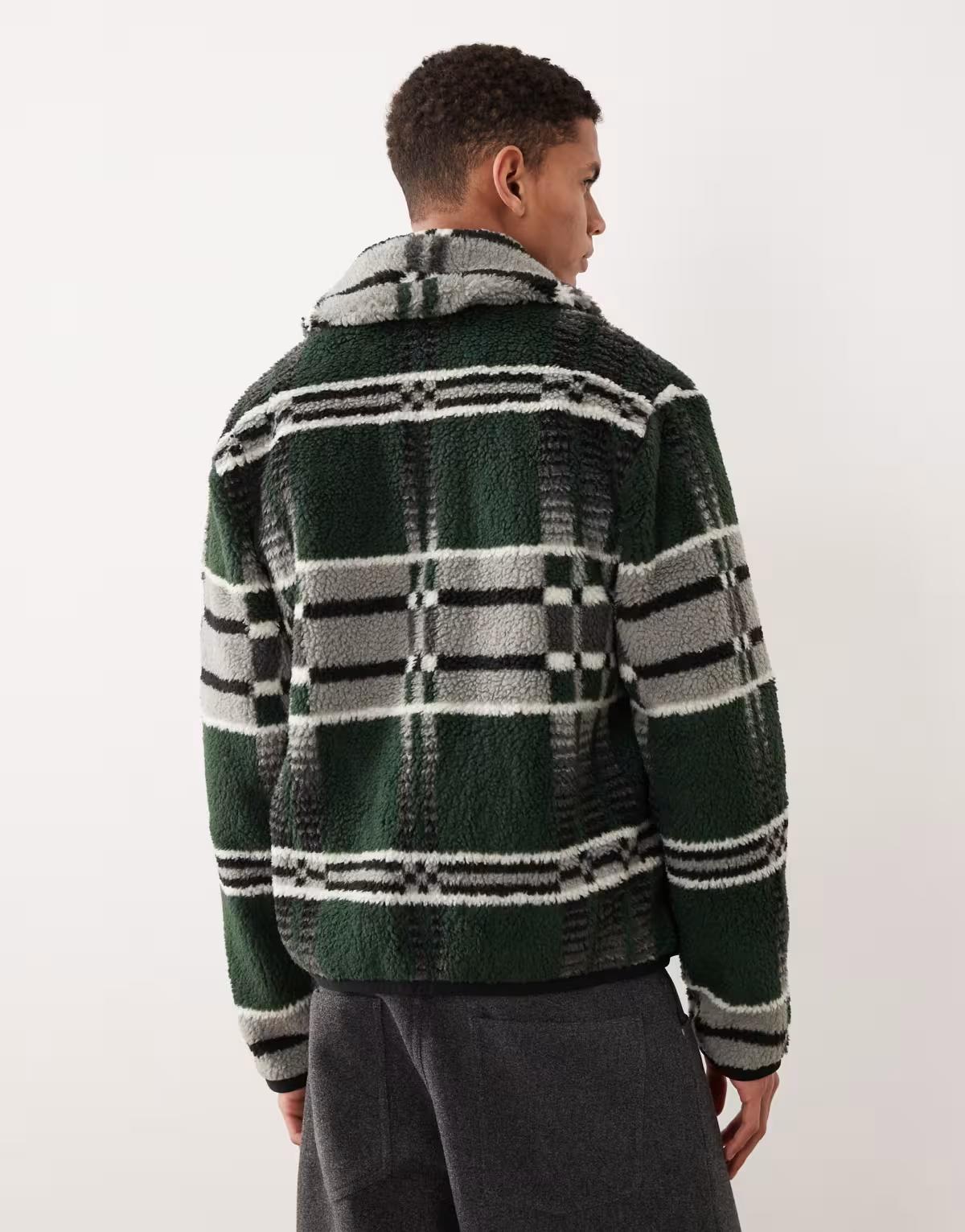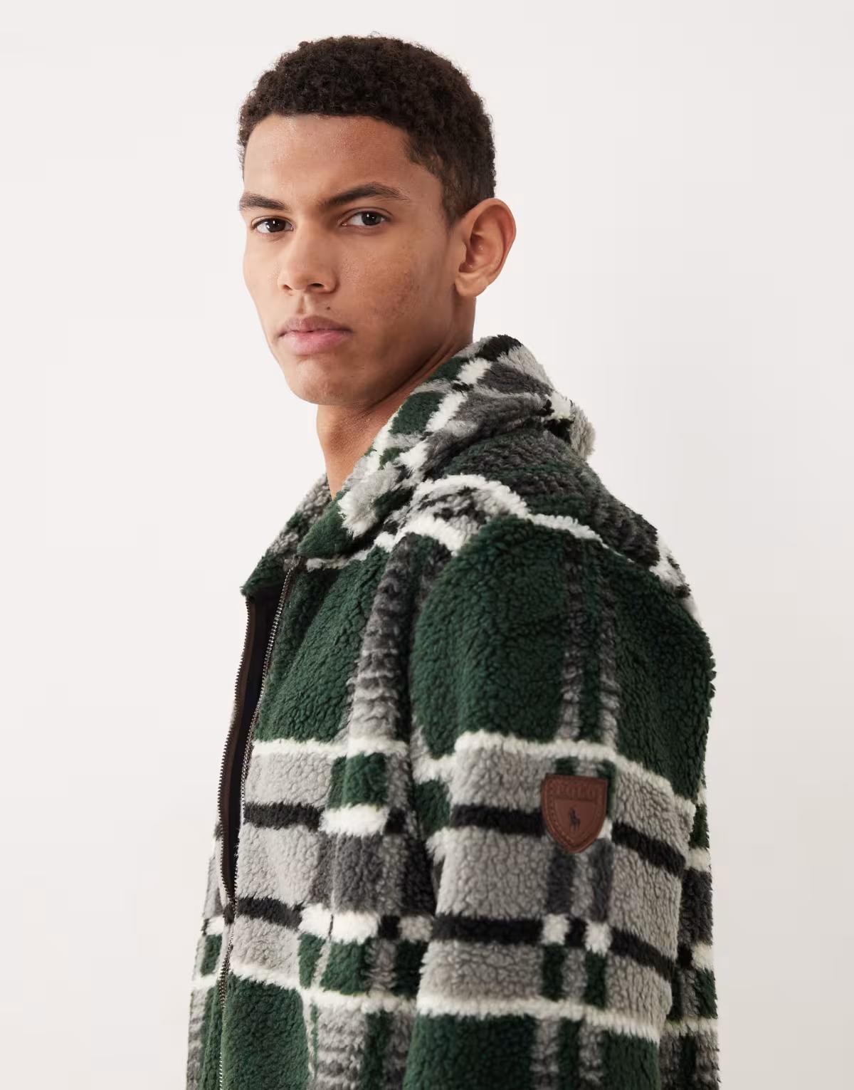 Polo Ralph Lauren blanket print borg full zip jacket in dark green