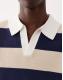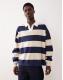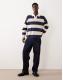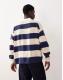 ASOS DESIGN relaxed knitted notch neck polo in navy and ecru stripe