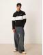 ASOS DEISIGN polo with colour blocking and embroidery in black
