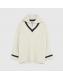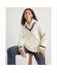 Cream Knitted Stripe detail zip Up Jumper
