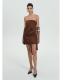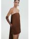 Tejido satinado. Diseño corto. Diseño recto. Palabra de honor. Tirantes ajustables desmontables. Cierre cremallera invisible en el lateral. Colección fiesta y ceremonia. Colección Selection. Tiras en la parte posterior. Una selección de prendas refinadas, confeccionadas con tejidos de calidad para construir un armario femenino y contemporáneo