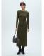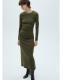 Tejido de punto. Diseño entallado. Diseño midi. Manga larga. Fruncidos laterales. Sin cierre. Tejido elástico