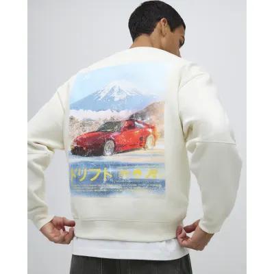 Cream Regular Fit Fuji Car Sweatshirt